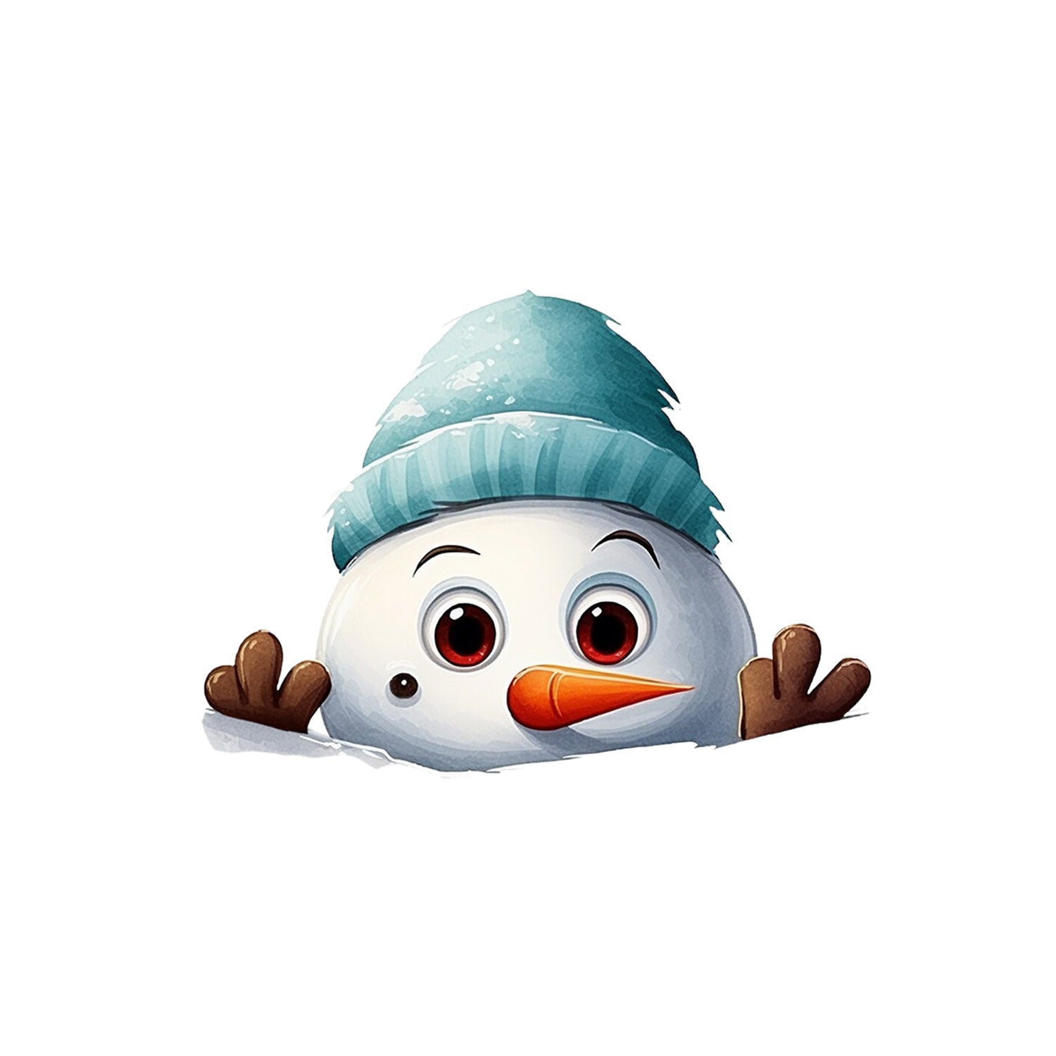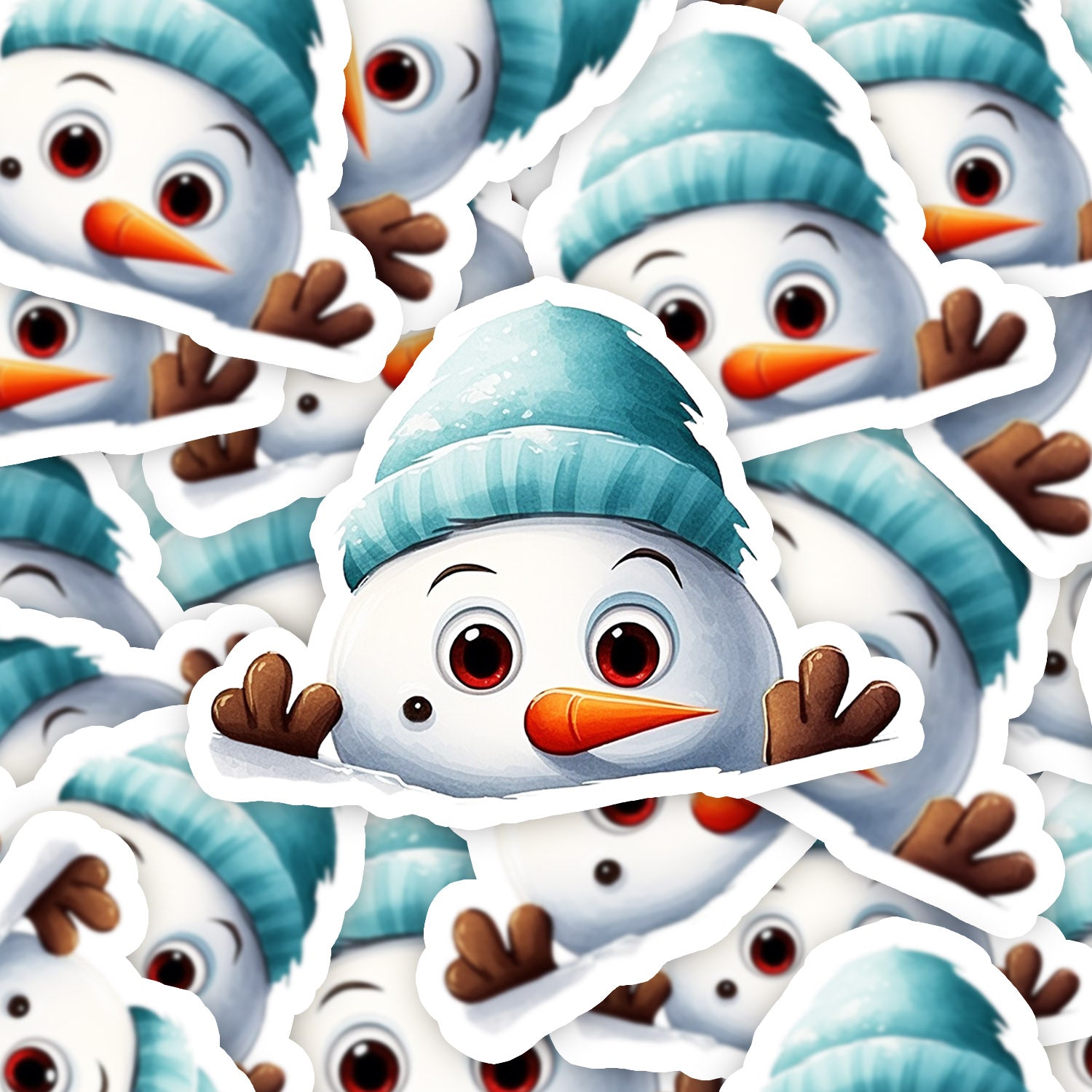 Set 5 bucati, Sticker decorativ, Omul de zapada curios, Rezistent la apa, NO11267, 6 cm, Multicolor