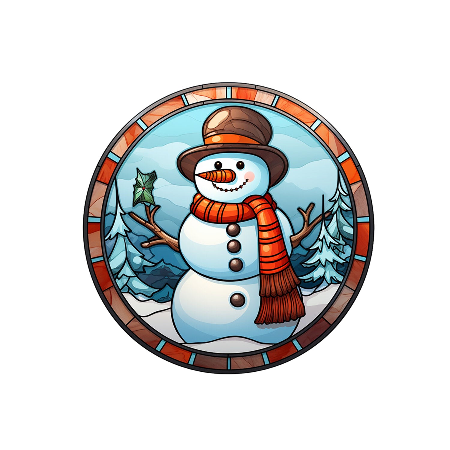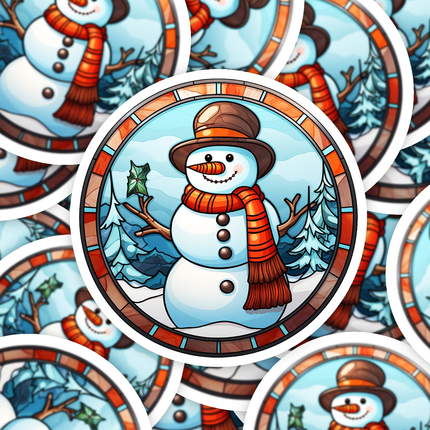 Set 5 bucati, Sticker decorativ, Omul de zapada din fereastra, Rezistent la apa, NO13607, 6 cm, Multicolor