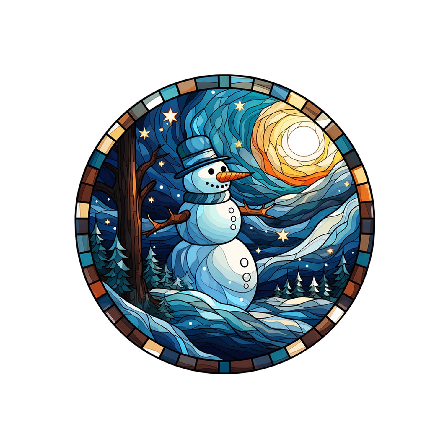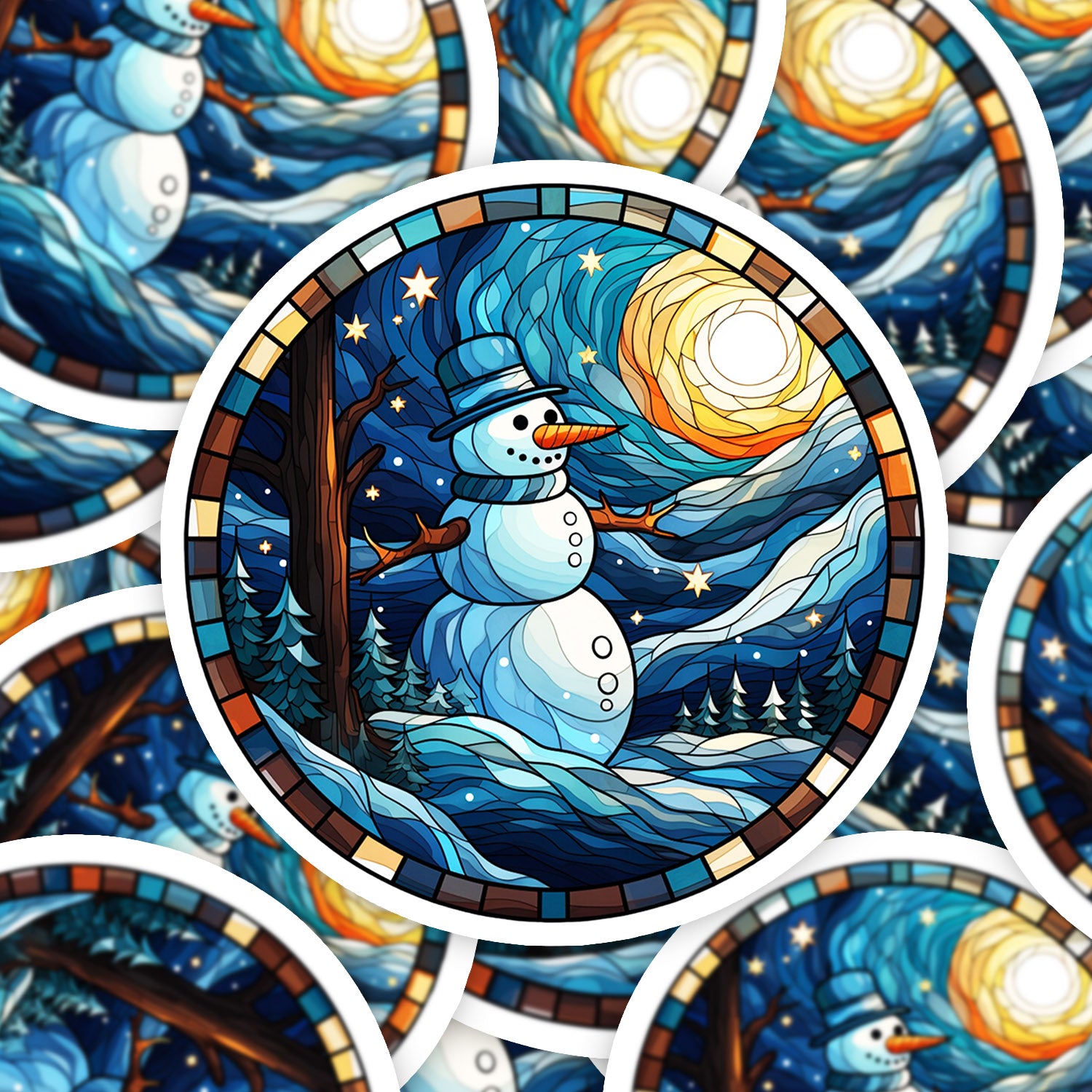 Set 5 bucati, Sticker decorativ, Omul de zapada in noapte, Rezistent la apa, NO12763, 6 cm, Multicolor