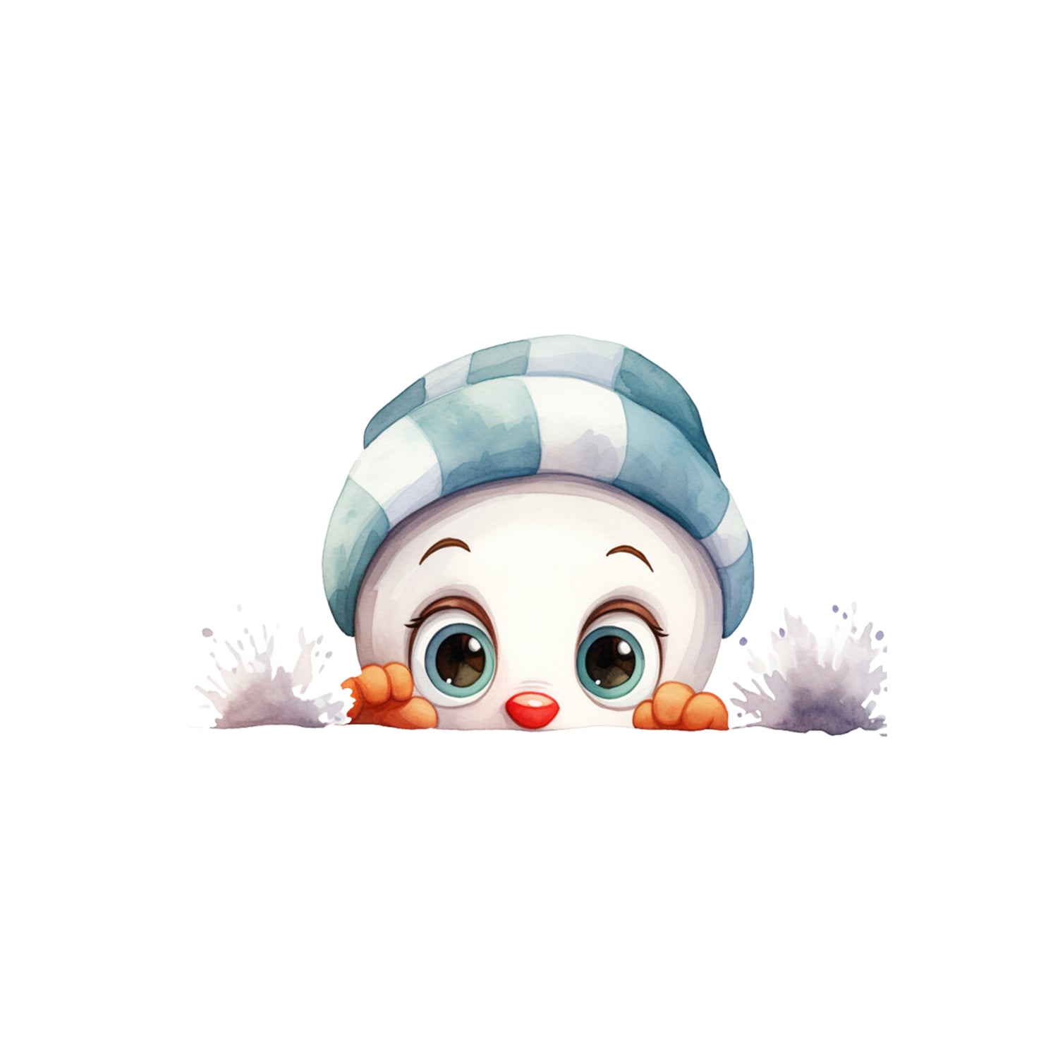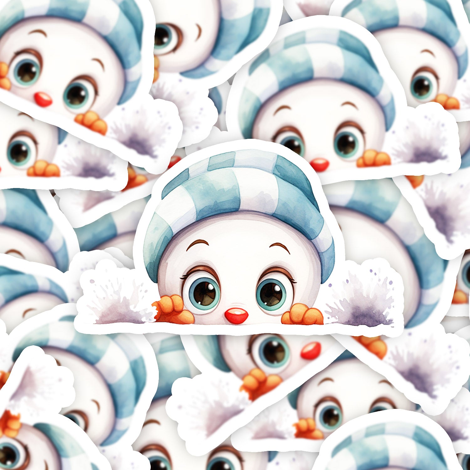Set 5 bucati, Sticker decorativ, Omul de zapada se uita peste zid, Rezistent la apa, NO10233, 6 cm, Multicolor