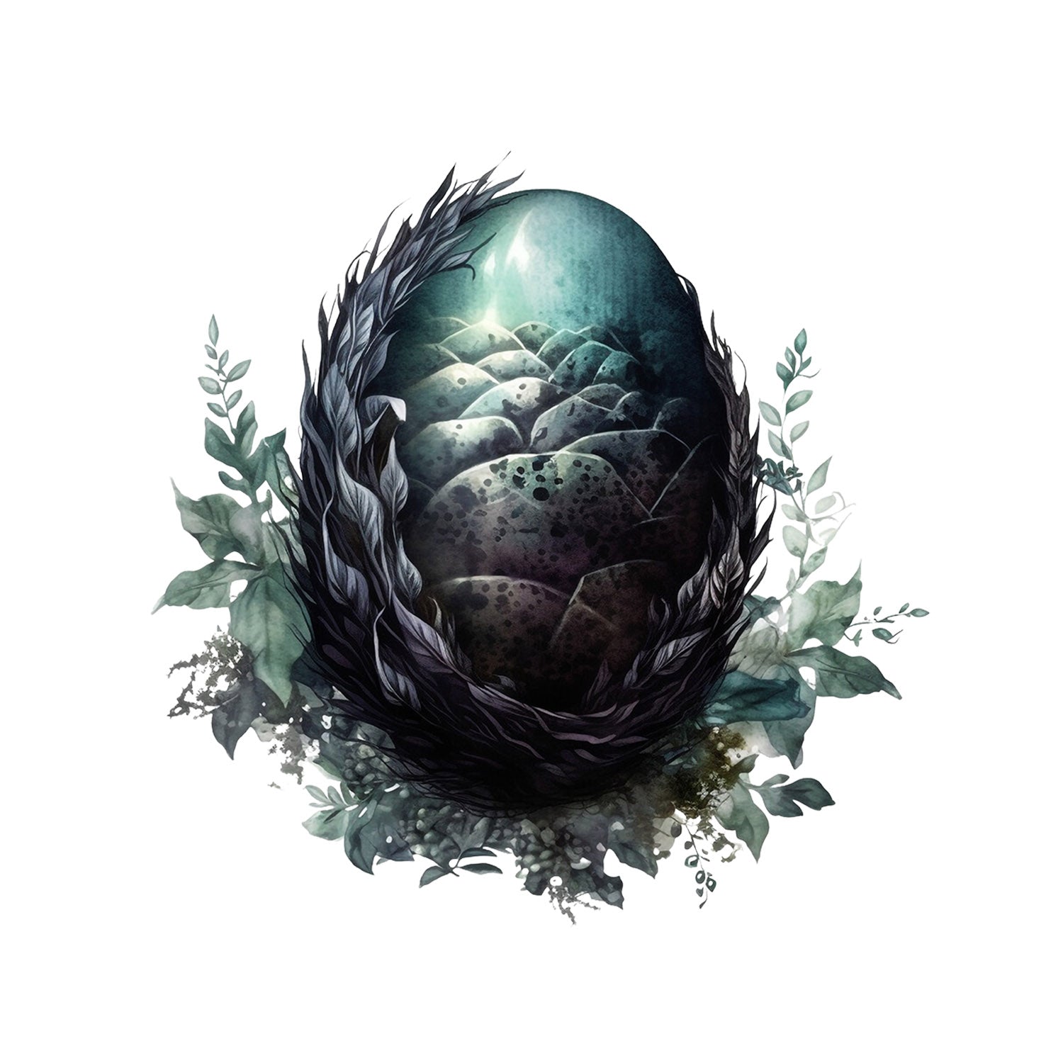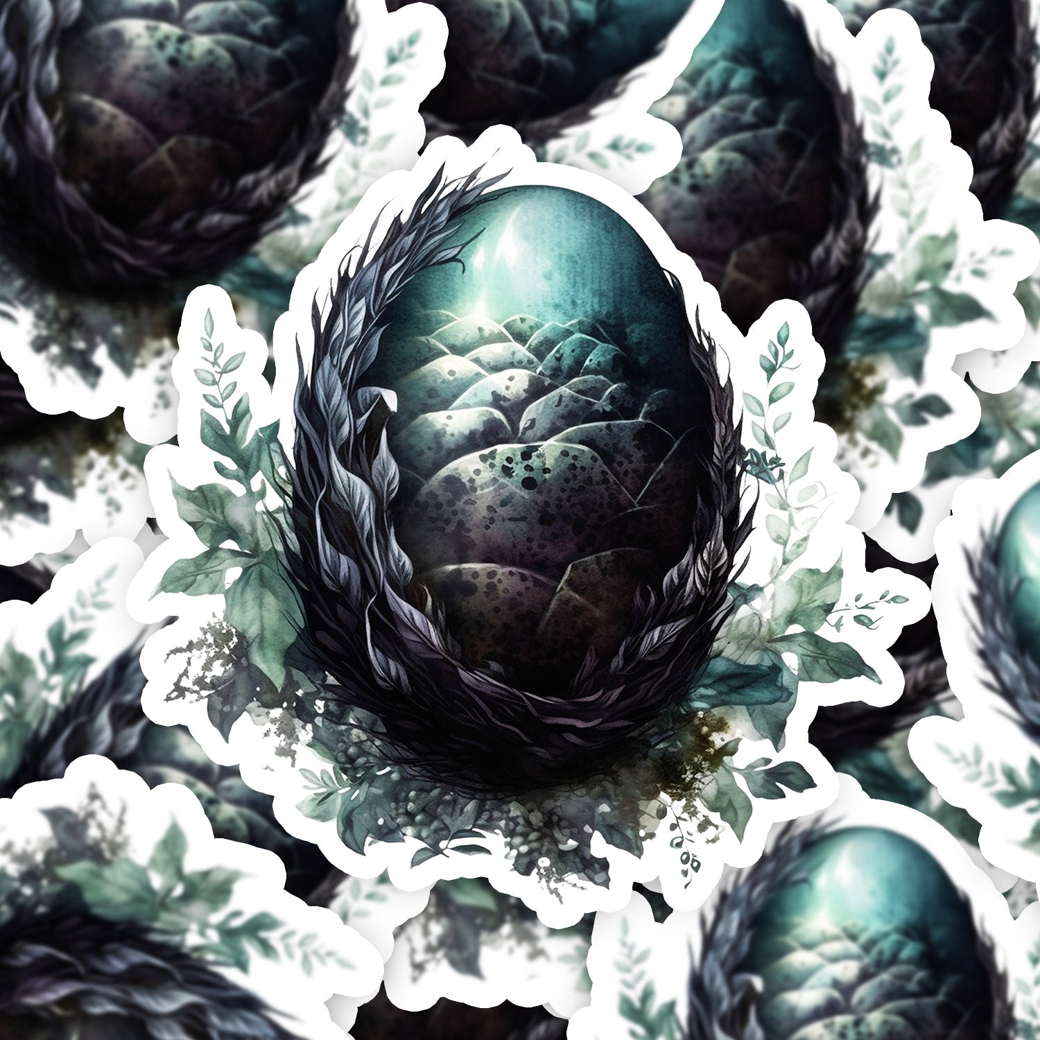 Set 5 bucati, Sticker decorativ, Ou de dragon in frunze, Rezistent la apa, NO15217, 6 cm, Multicolor