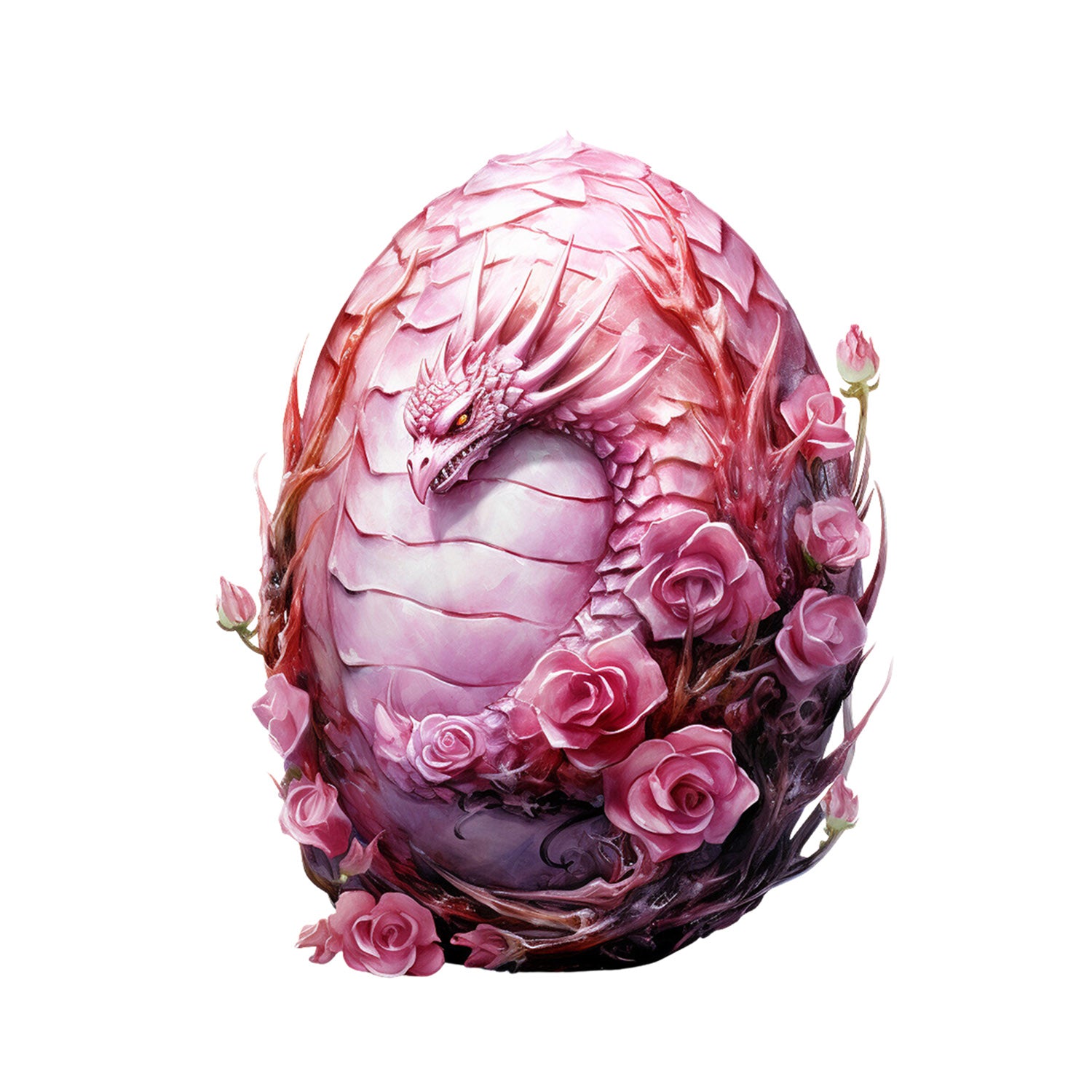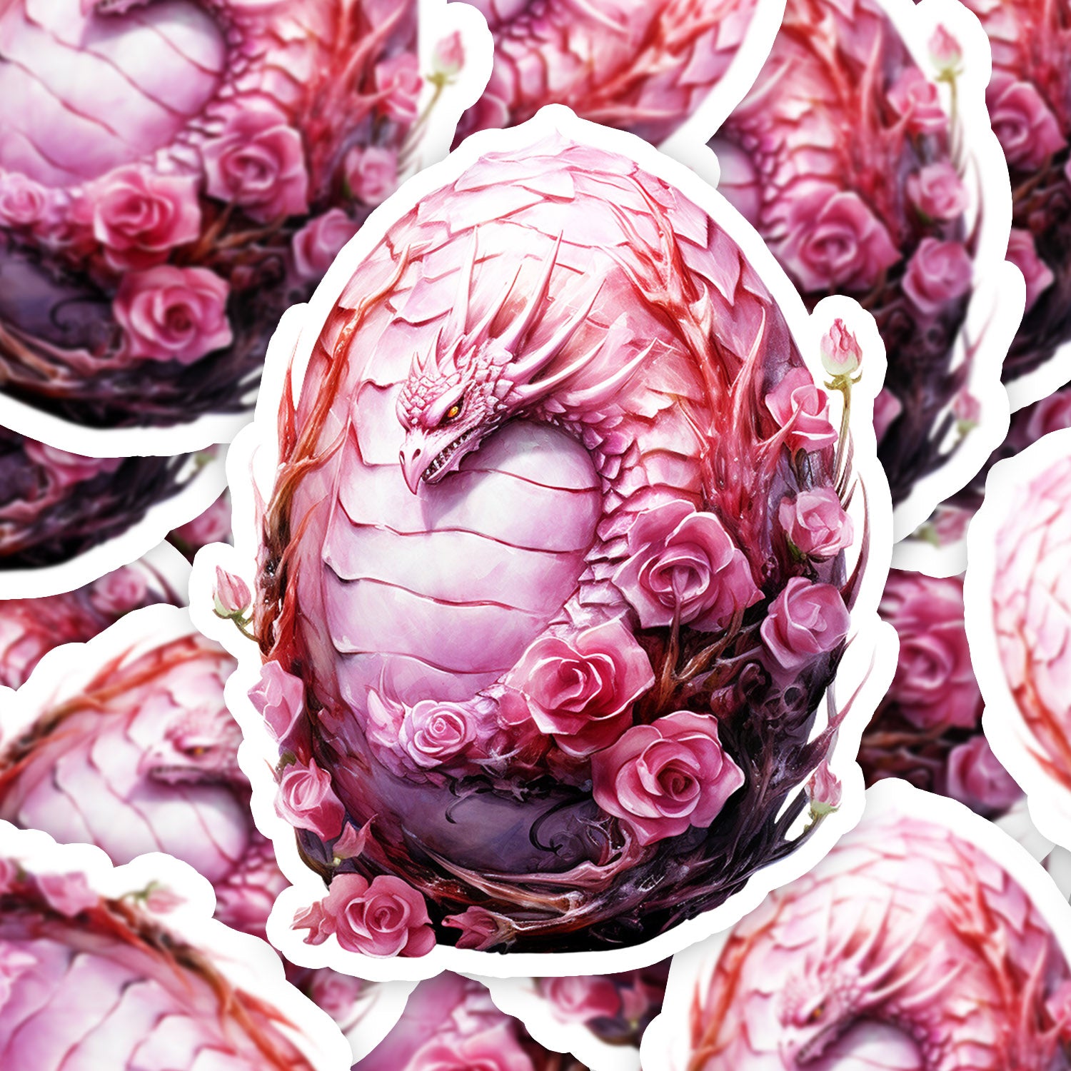 Set 5 bucati, Sticker decorativ, Oul de dragon roz cu trandafiri, Rezistent la apa, NO13443, 6 cm, Multicolor