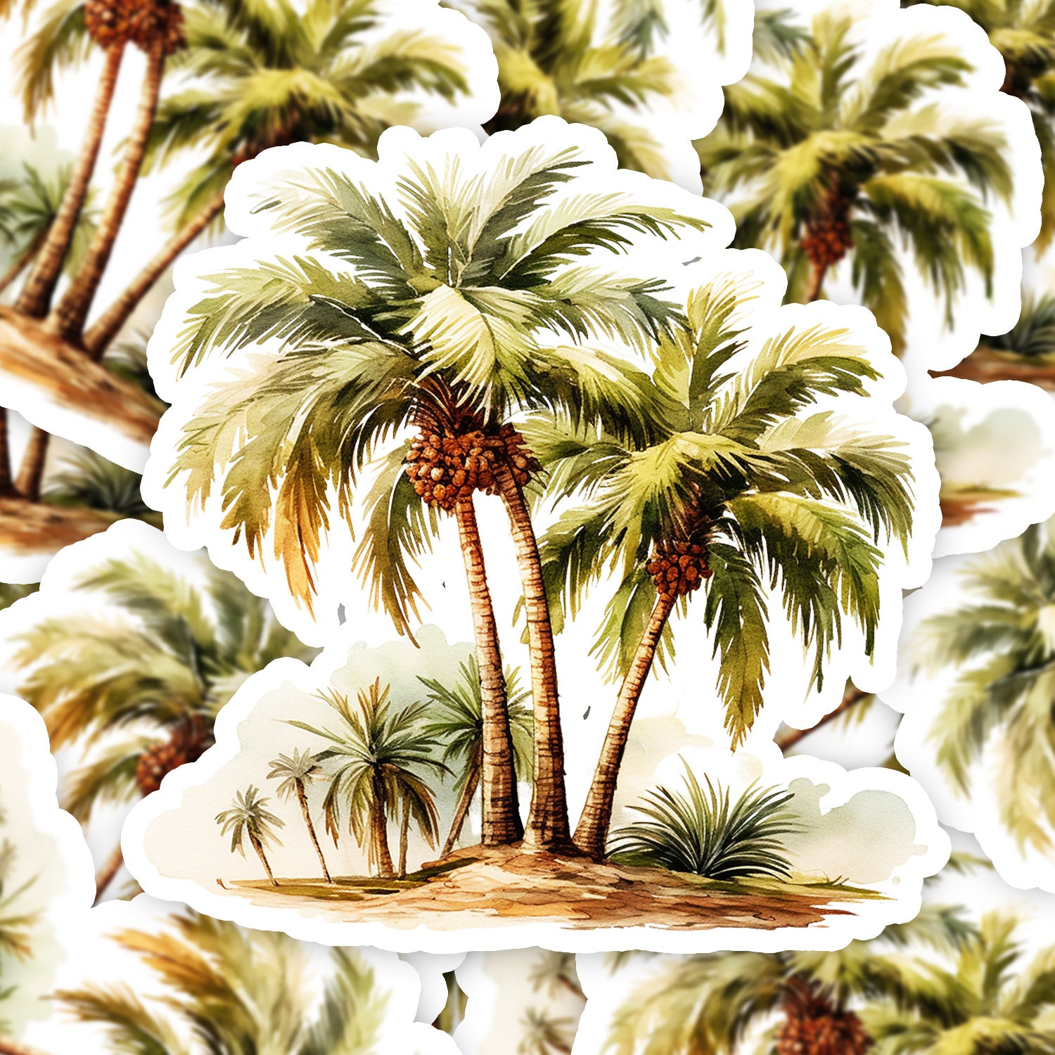 Set 5 bucati, Sticker decorativ, Padute de cocotieri, Rezistent la apa, NO11358, 6 cm, Multicolor
