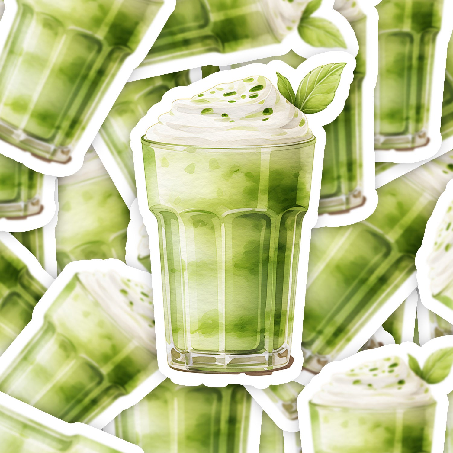 Set 5 bucati, Sticker decorativ, Pahar cu cafea verde cu frisca, Rezistent la apa, NO12383, 6 cm, Multicolor