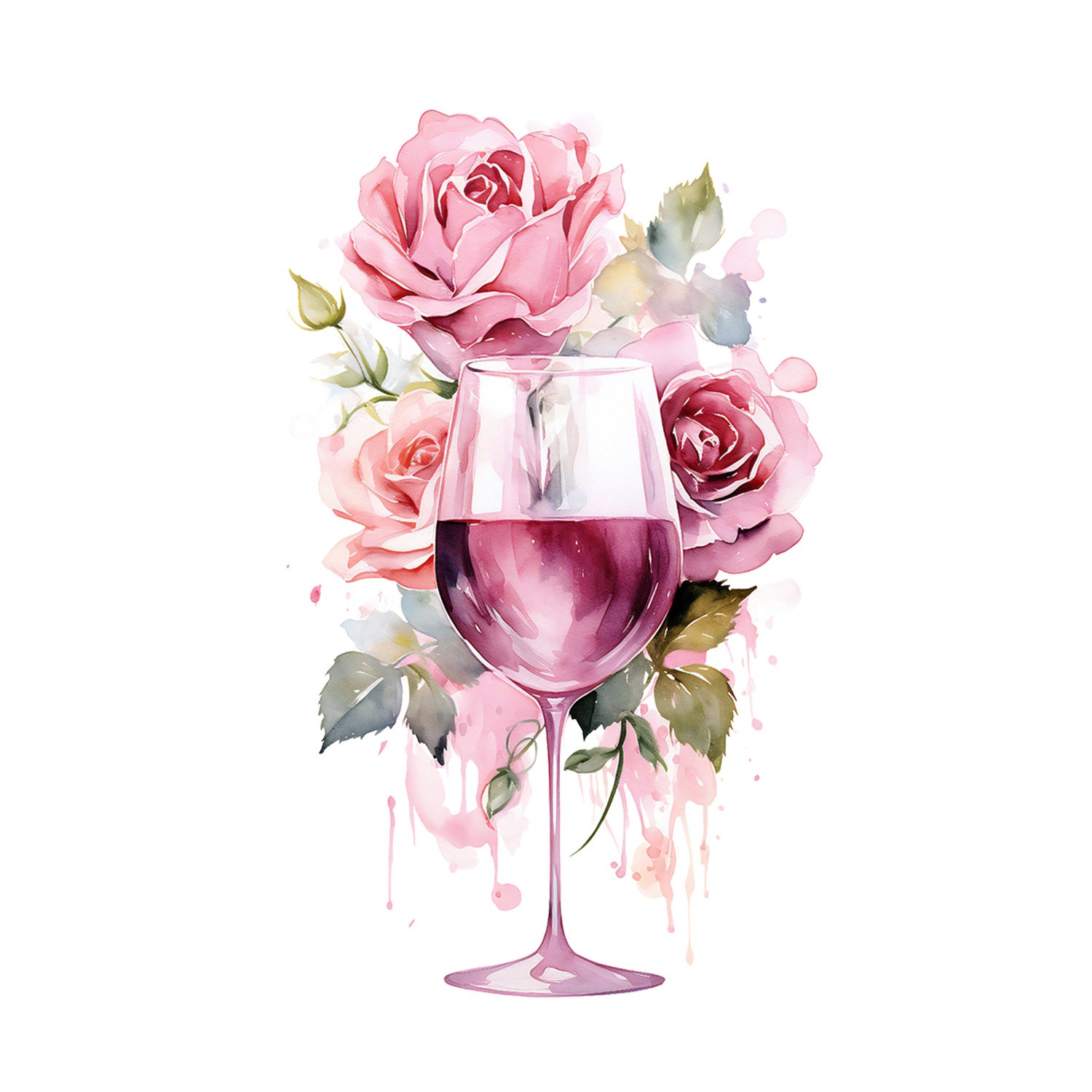 Set 5 bucati, Sticker decorativ, Pahar cu vin rosu si trei trandafiri, Rezistent la apa, NO16494, 6 cm, Multicolor