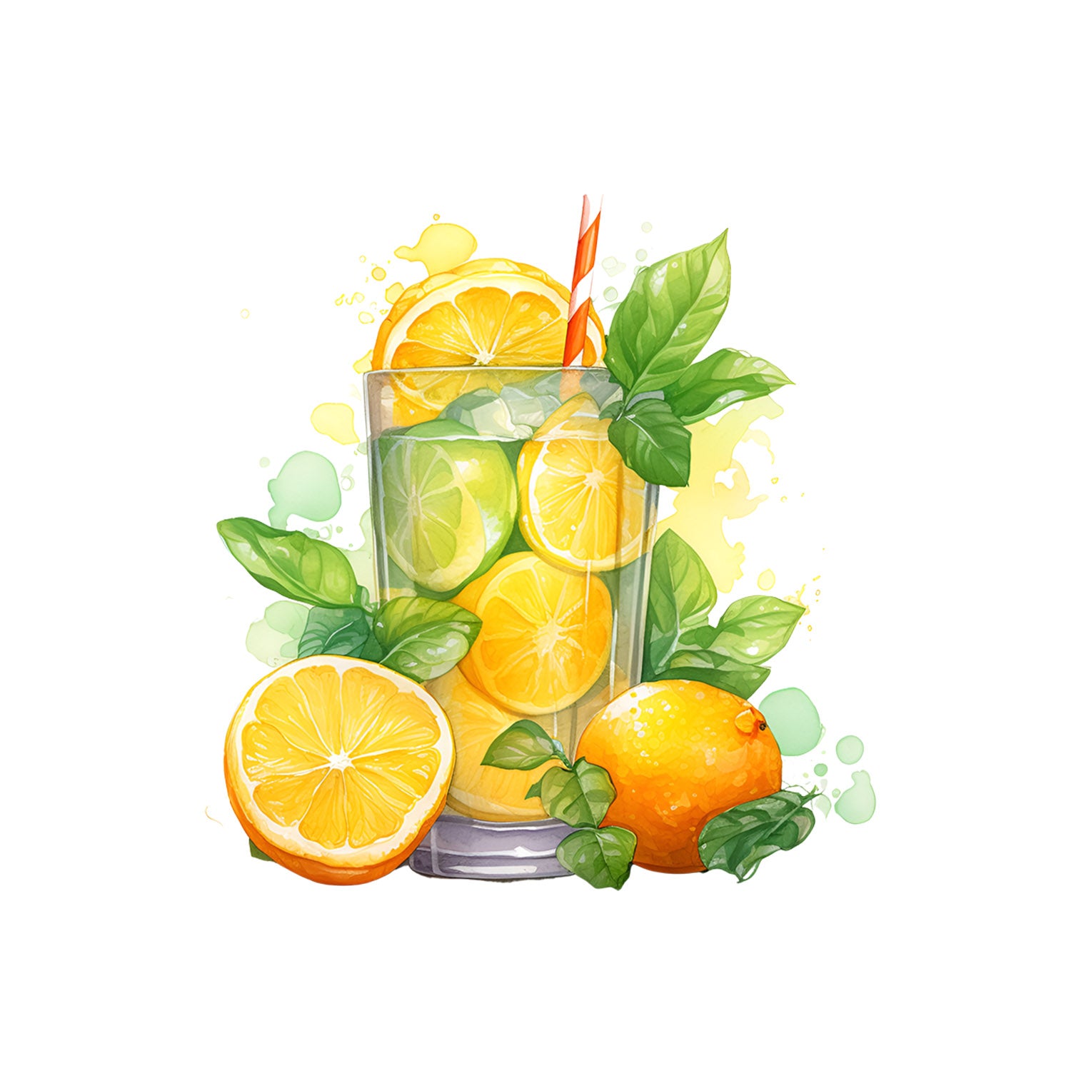 Set 5 bucati, Sticker decorativ, Paharul cu suc de citrice, Rezistent la apa, NO16542, 6 cm, Multicolor