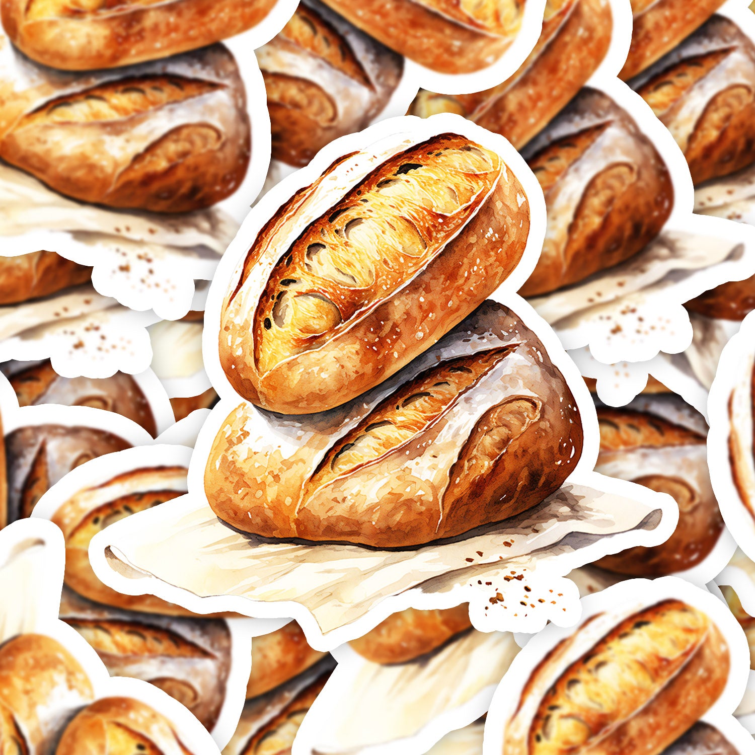 Set 5 bucati, Sticker decorativ, Paine rotunda si paine rascoapta, Rezistent la apa, NO14479, 6 cm, Multicolor