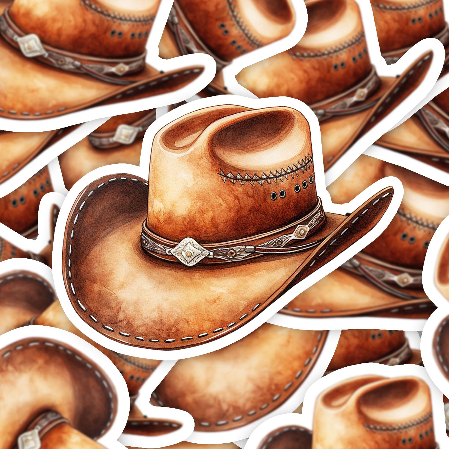 Set 5 bucati, Sticker decorativ, Palarie cowboy Hydra, Rezistent la apa, NO11136, 6 cm, Multicolor
