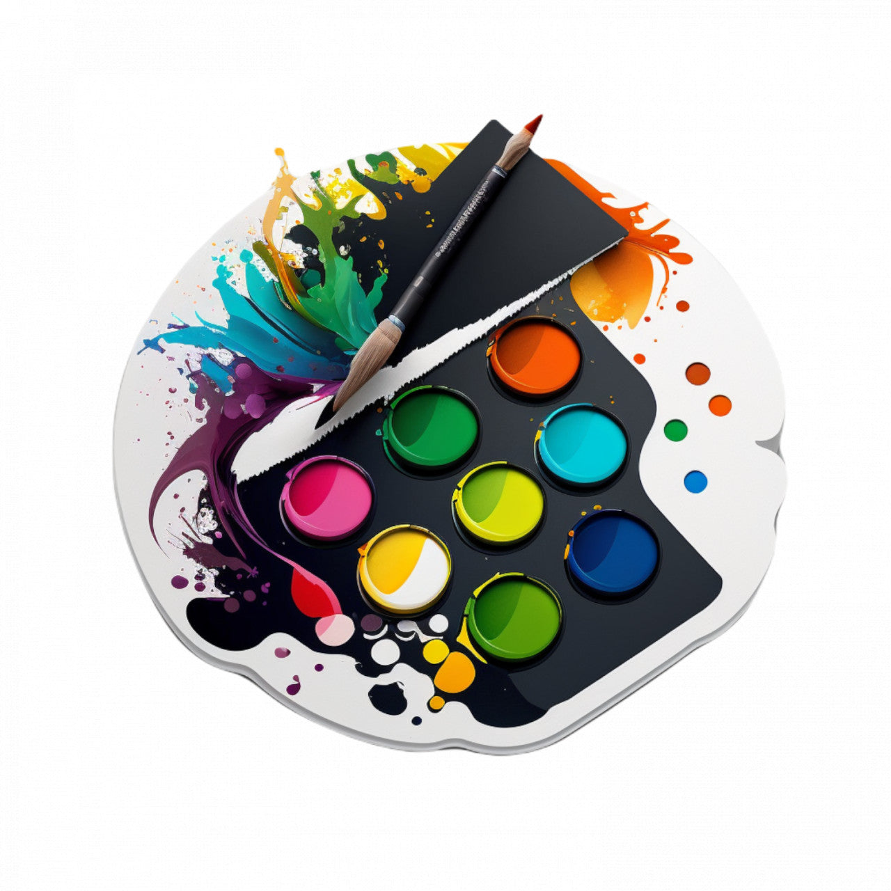 Set 5 bucati, Sticker decorativ, Paleta de pictura cu pensula dubla, Rezistent la apa, NO10097, 6 cm, Multicolor