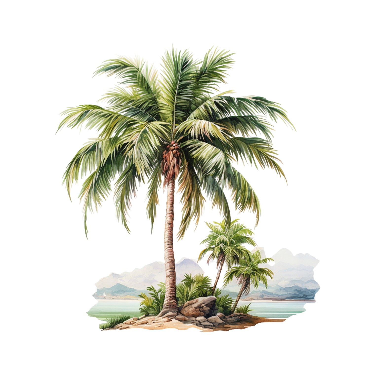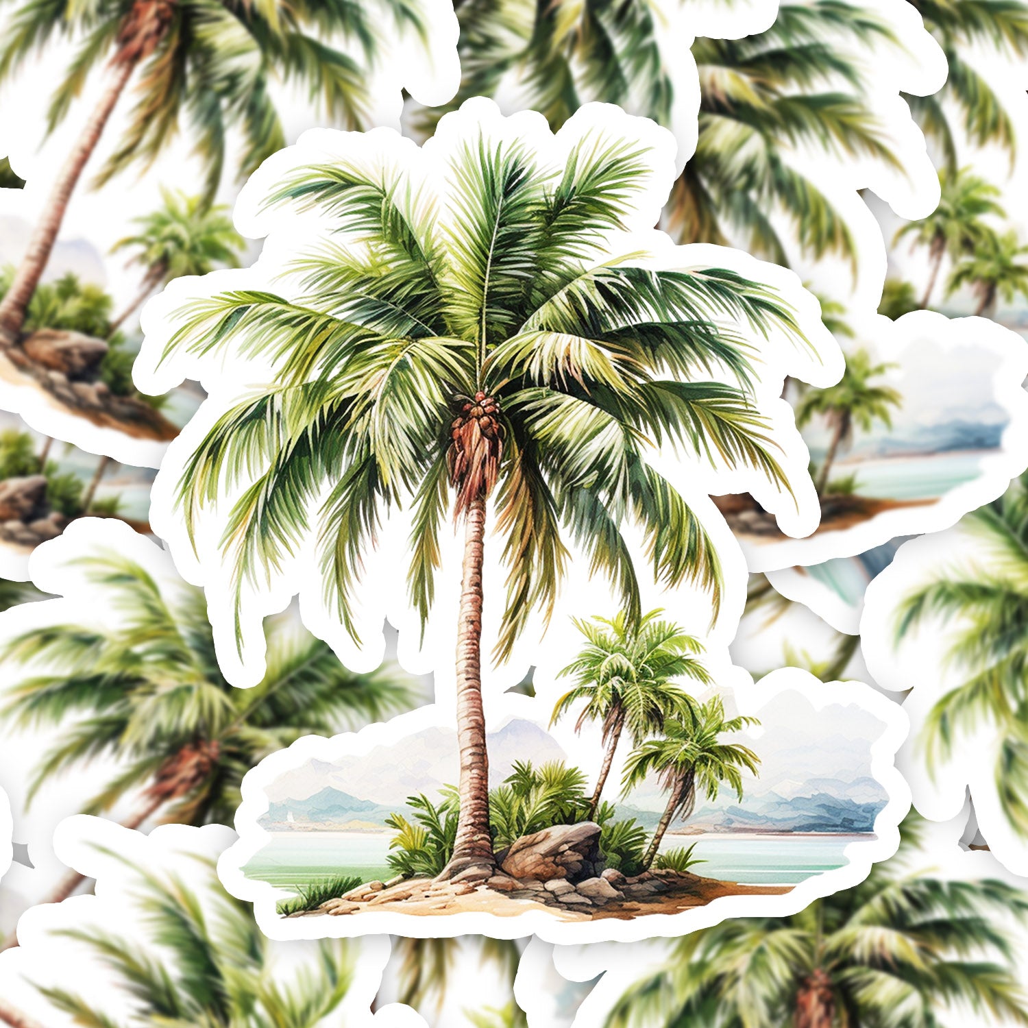 Set 5 bucati, Sticker decorativ, Palmieri langa apa, Rezistent la apa, NO10024, 6 cm, Multicolor