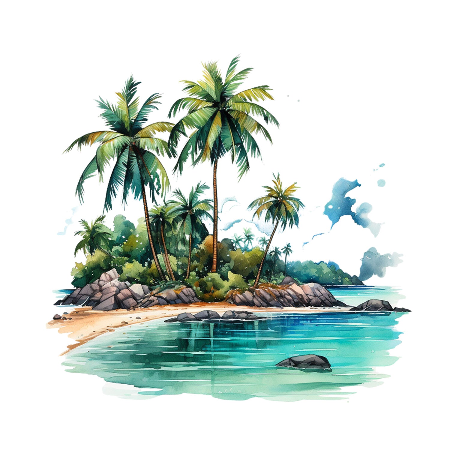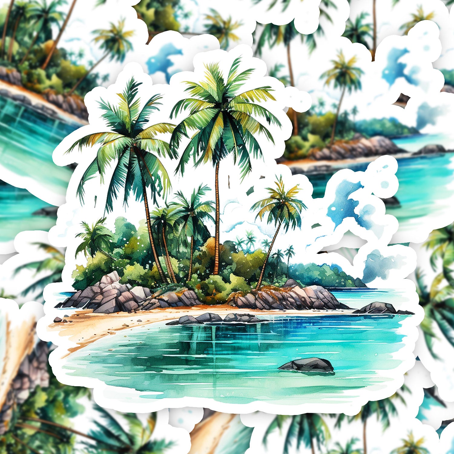 Set 5 bucati, Sticker decorativ, Palmieri langa lac de cristal, Rezistent la apa, NO16170, 6 cm, Multicolor