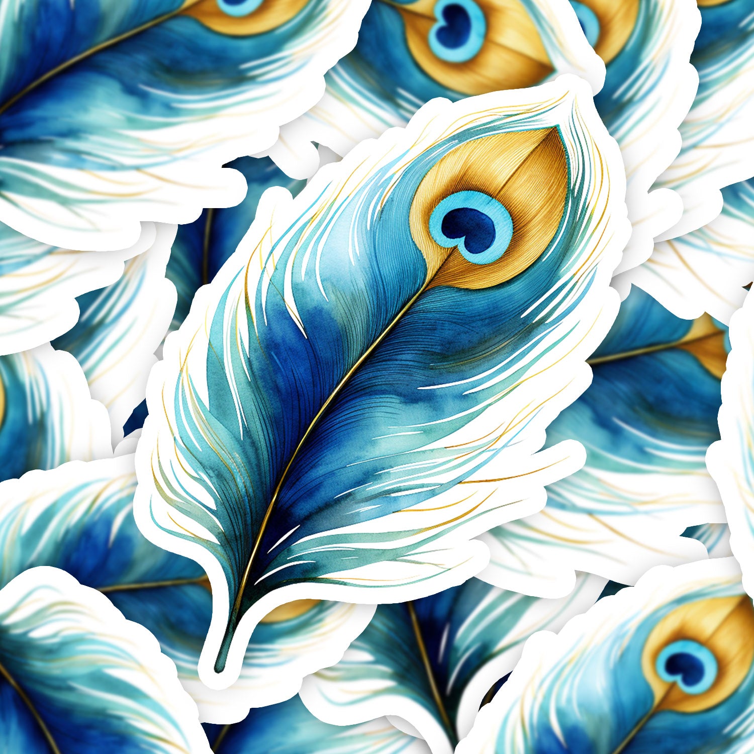 Set 5 bucati, Sticker decorativ, Pana de paun Beautiful, Rezistent la apa, NO10898, 6 cm, Multicolor