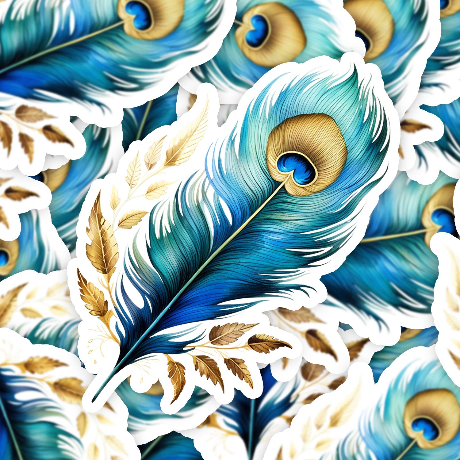 Set 5 bucati, Sticker decorativ, Pana de paun Delikat, Rezistent la apa, NO14005, 6 cm, Multicolor