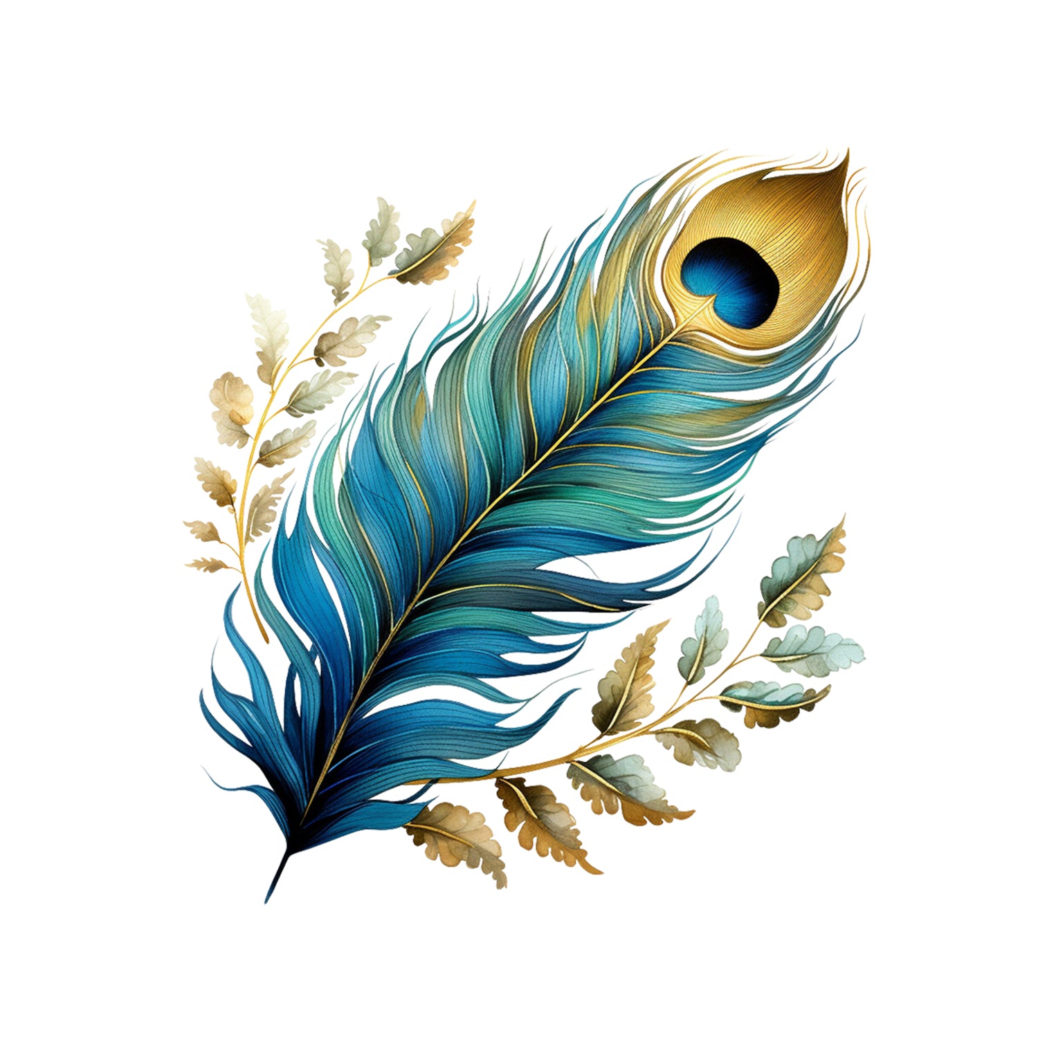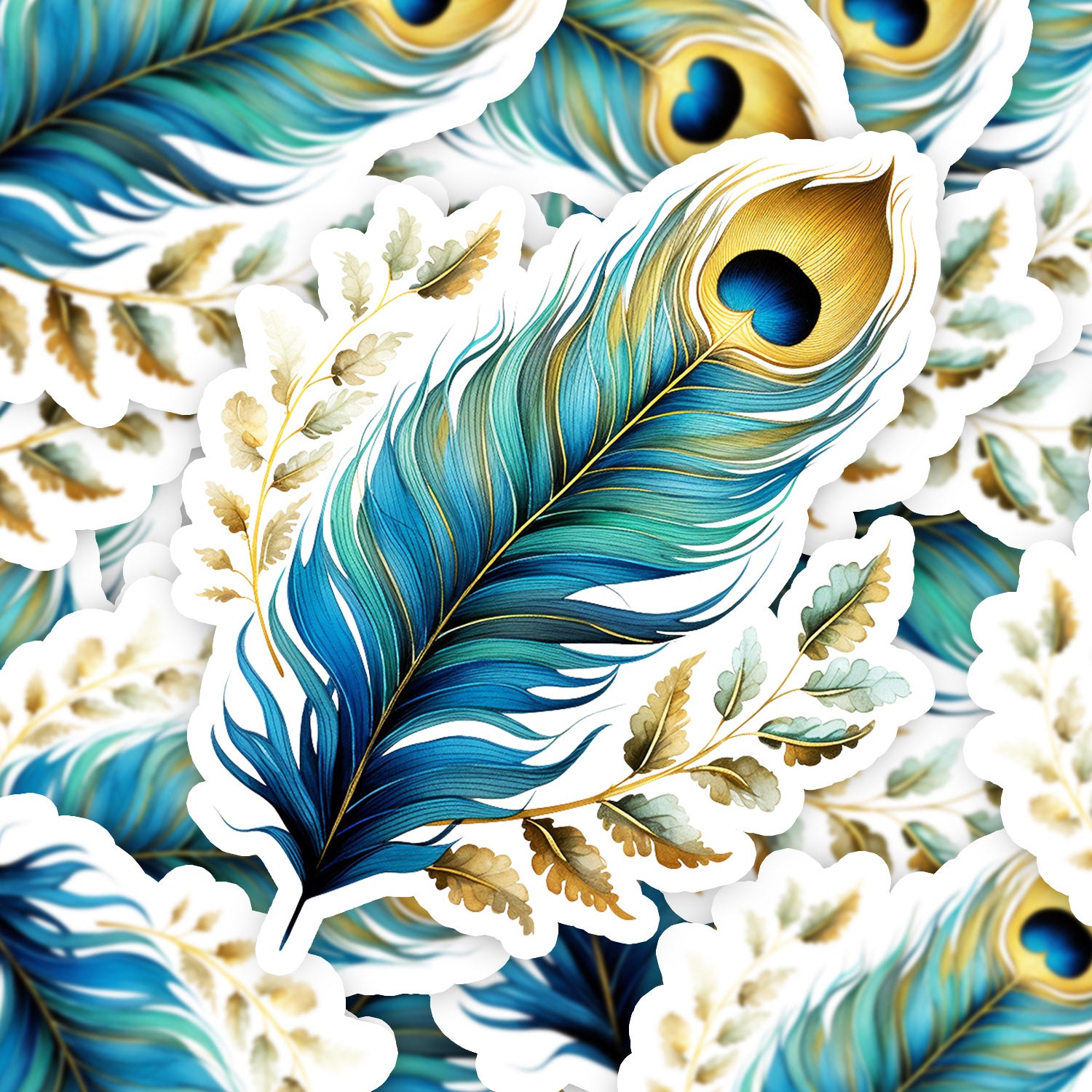 Set 5 bucati, Sticker decorativ, Pana de paun Gold, Rezistent la apa, NO10185, 6 cm, Multicolor