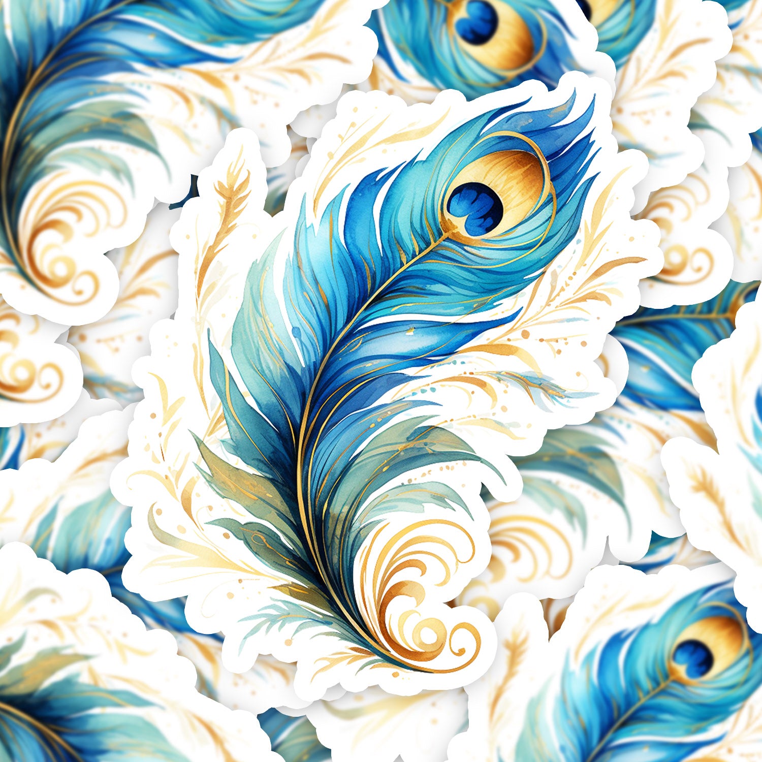 Set 5 bucati, Sticker decorativ, Pana de paun Inocent, Rezistent la apa, NO16269, 6 cm, Multicolor