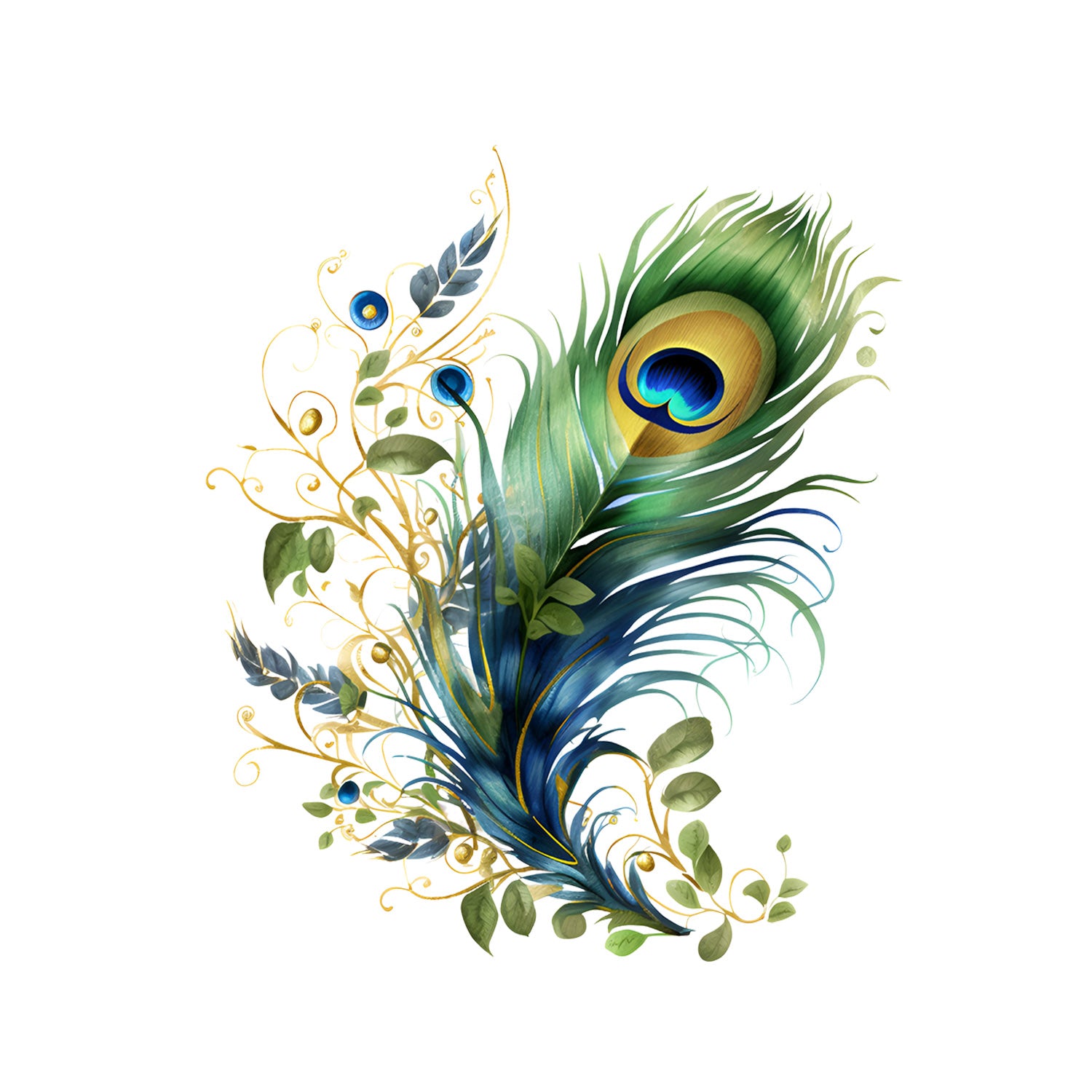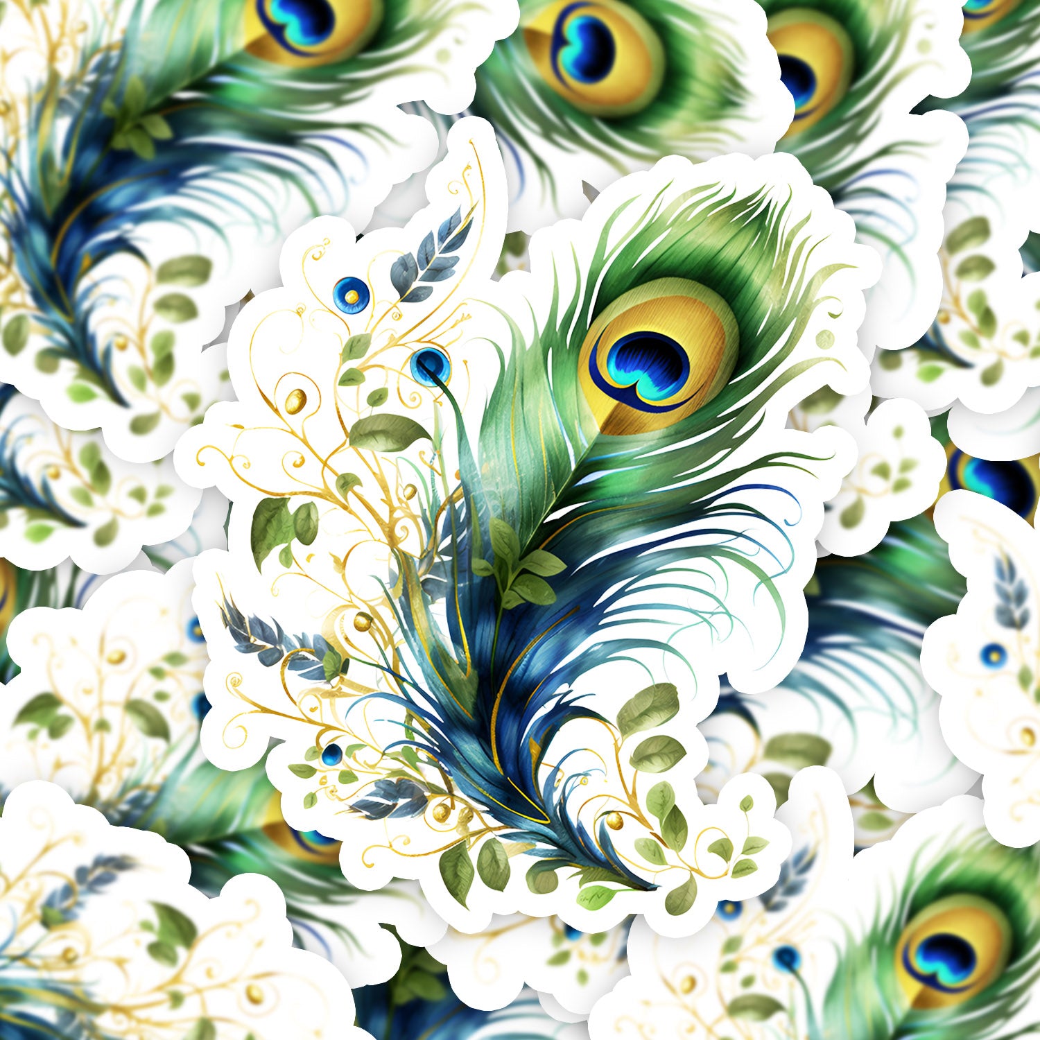 Set 5 bucati, Sticker decorativ, Pana de paun Lily, Rezistent la apa, NO14975, 6 cm, Multicolor
