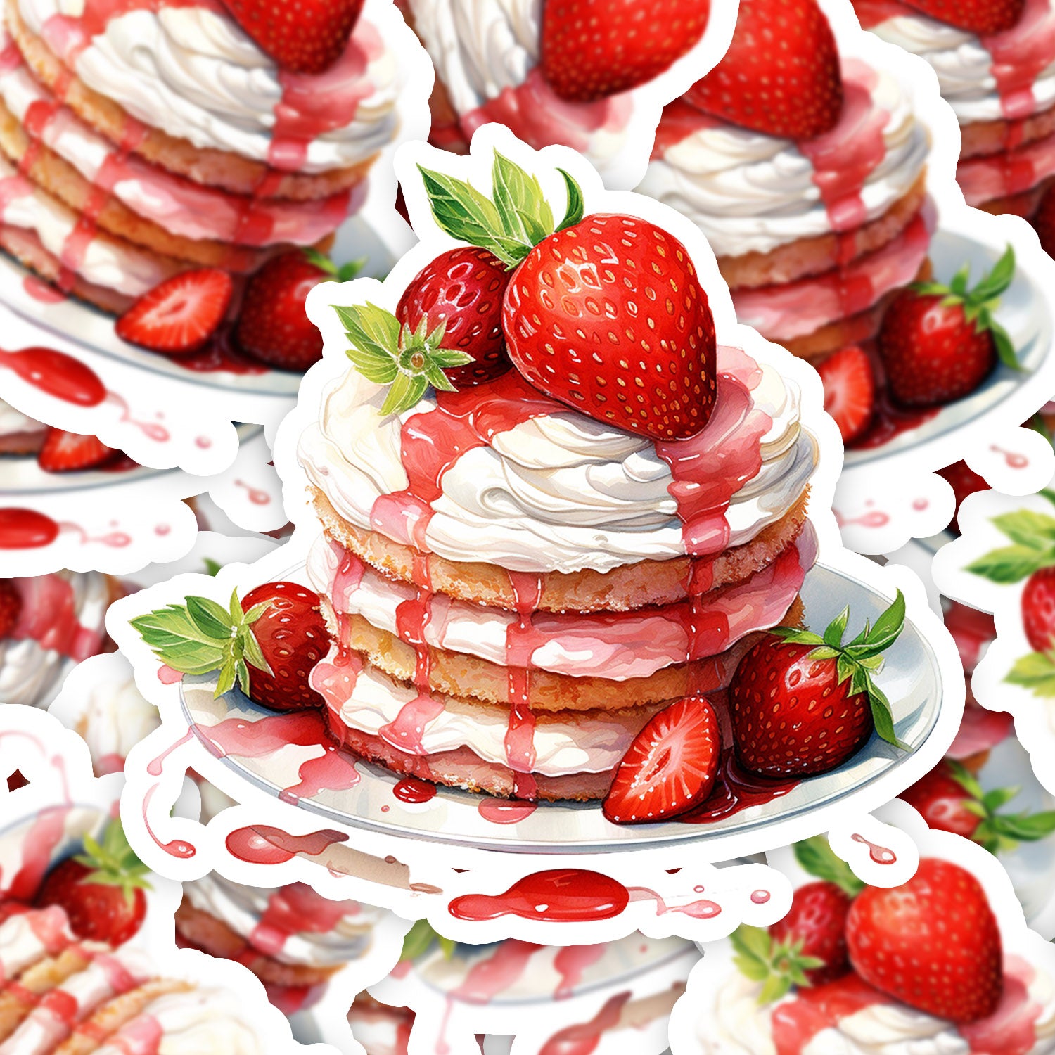 Set 5 bucati, Sticker decorativ, Pancake cu frisca si capsune, Rezistent la apa, NO15138, 6 cm, Multicolor