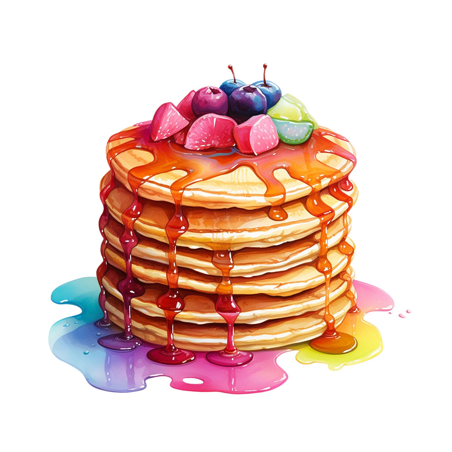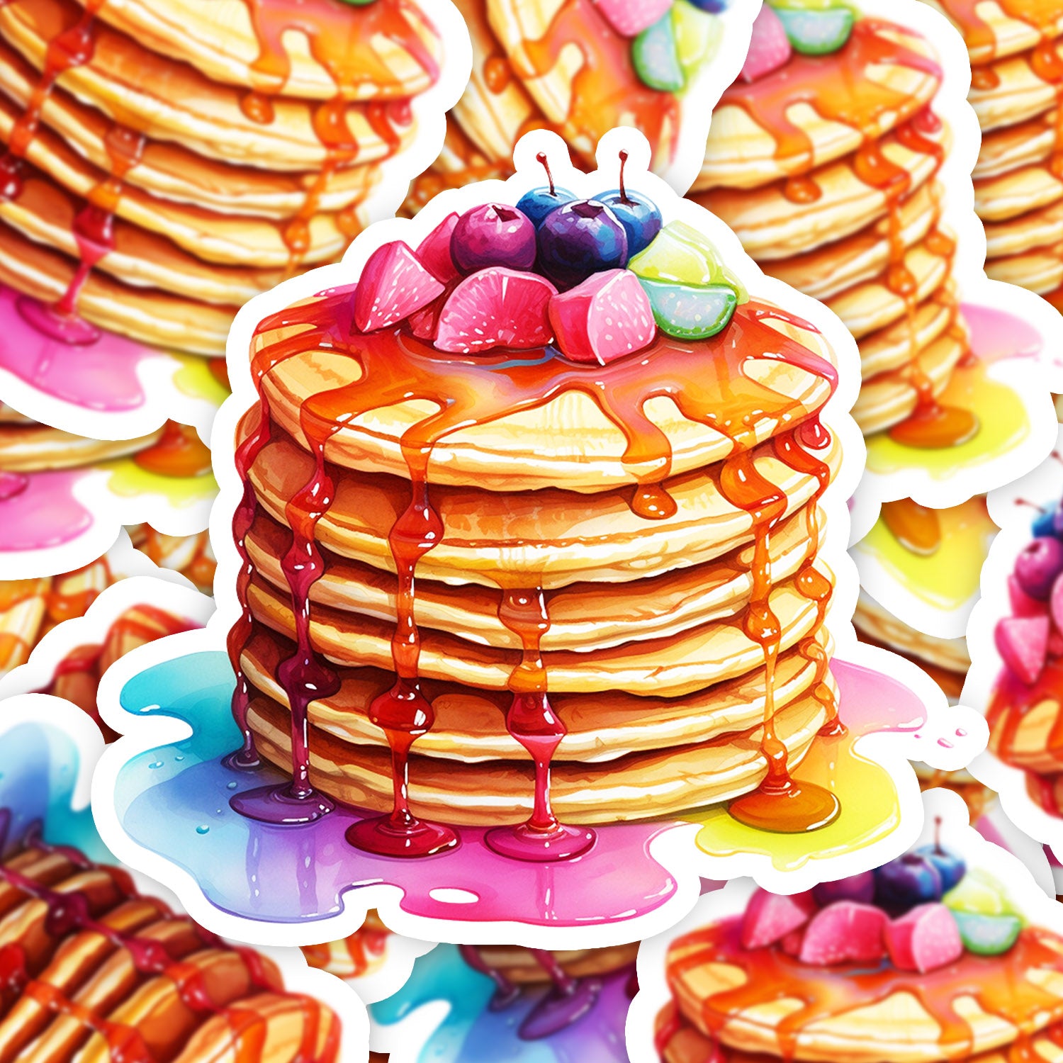 Set 5 bucati, Sticker decorativ, Pancakes cu miere si fructe, Rezistent la apa, NO13823, 6 cm, Multicolor