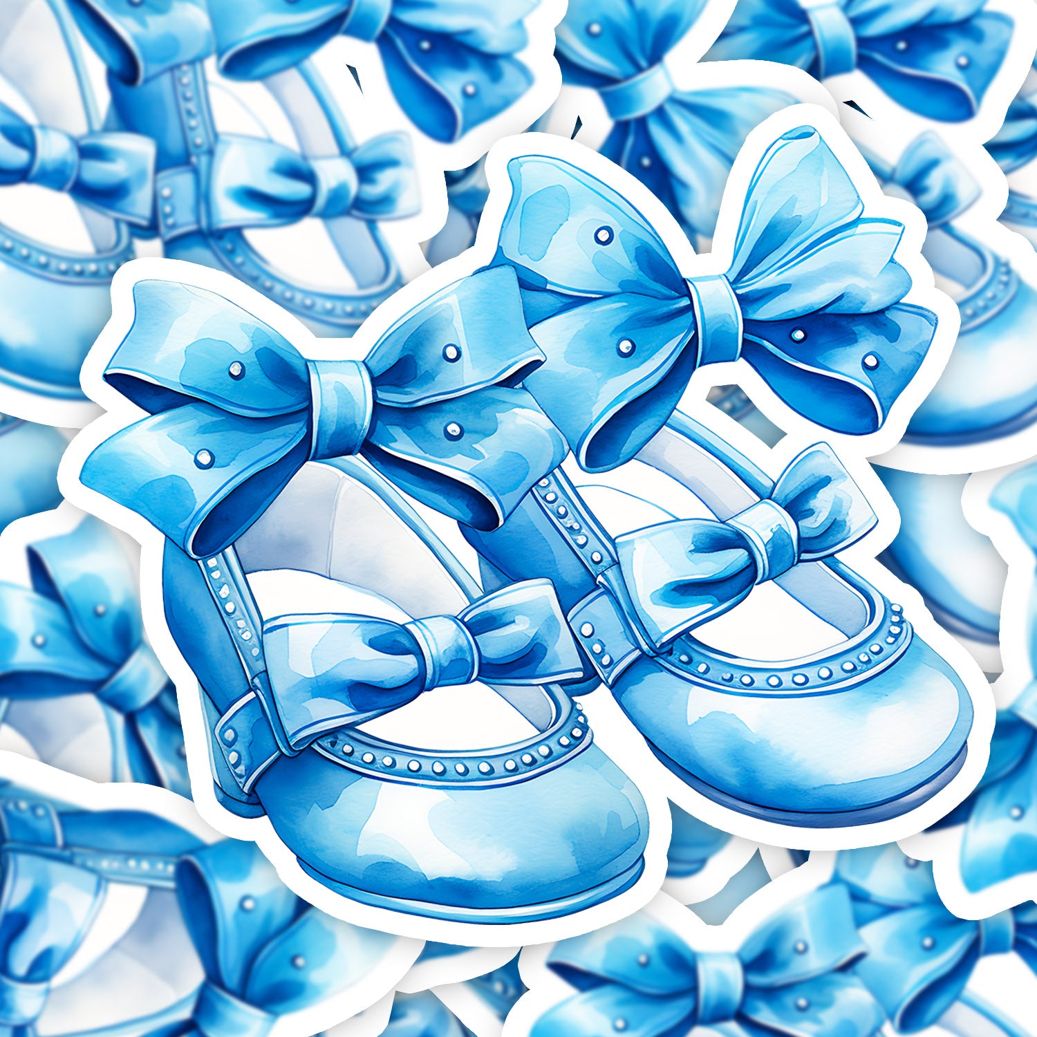 Set 5 bucati, Sticker decorativ, Pantofi albastri cu fundite pentru fetite, Rezistent la apa, NO14127, 6 cm, Multicolor