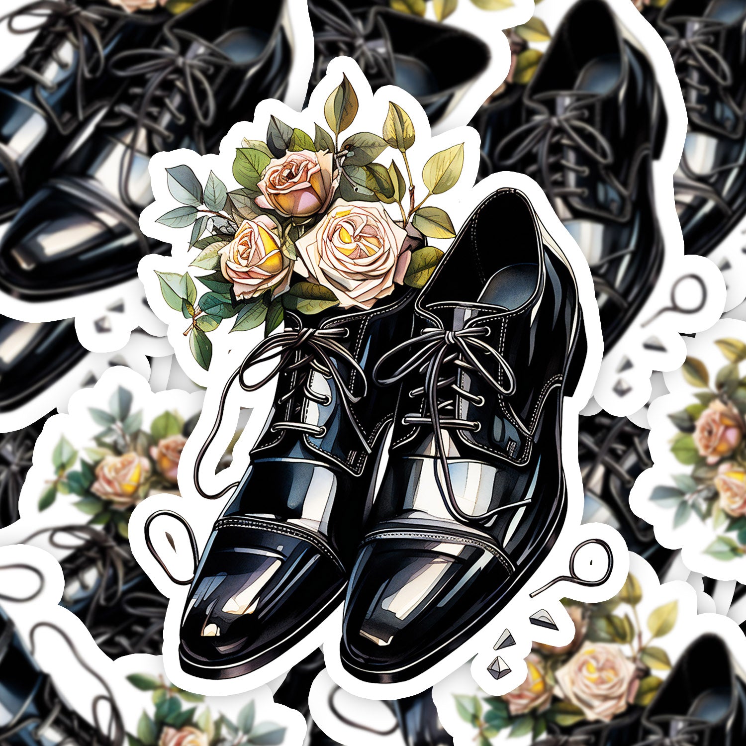 Set 5 bucati, Sticker decorativ, Pantofi barbatesti de nunta, Rezistent la apa, NO13073, 6 cm, Multicolor