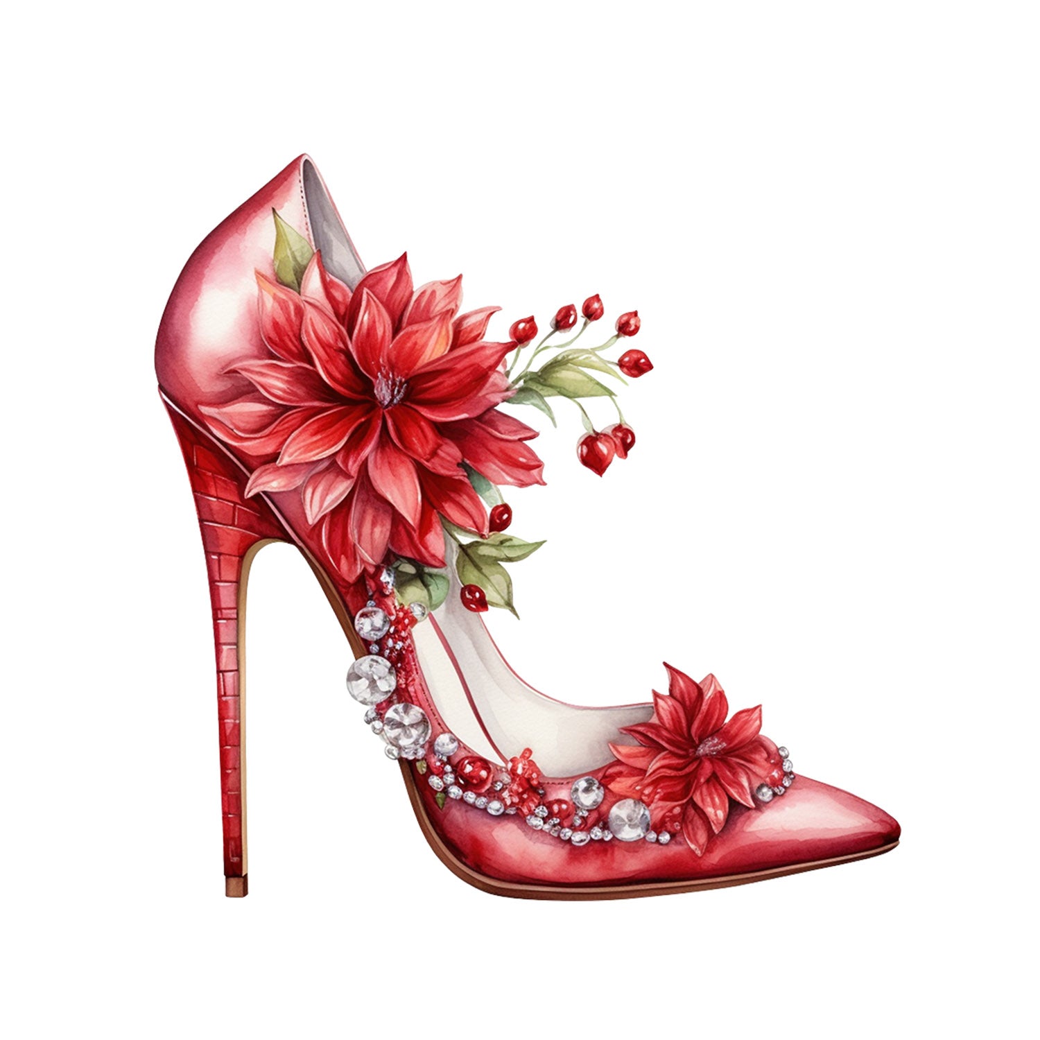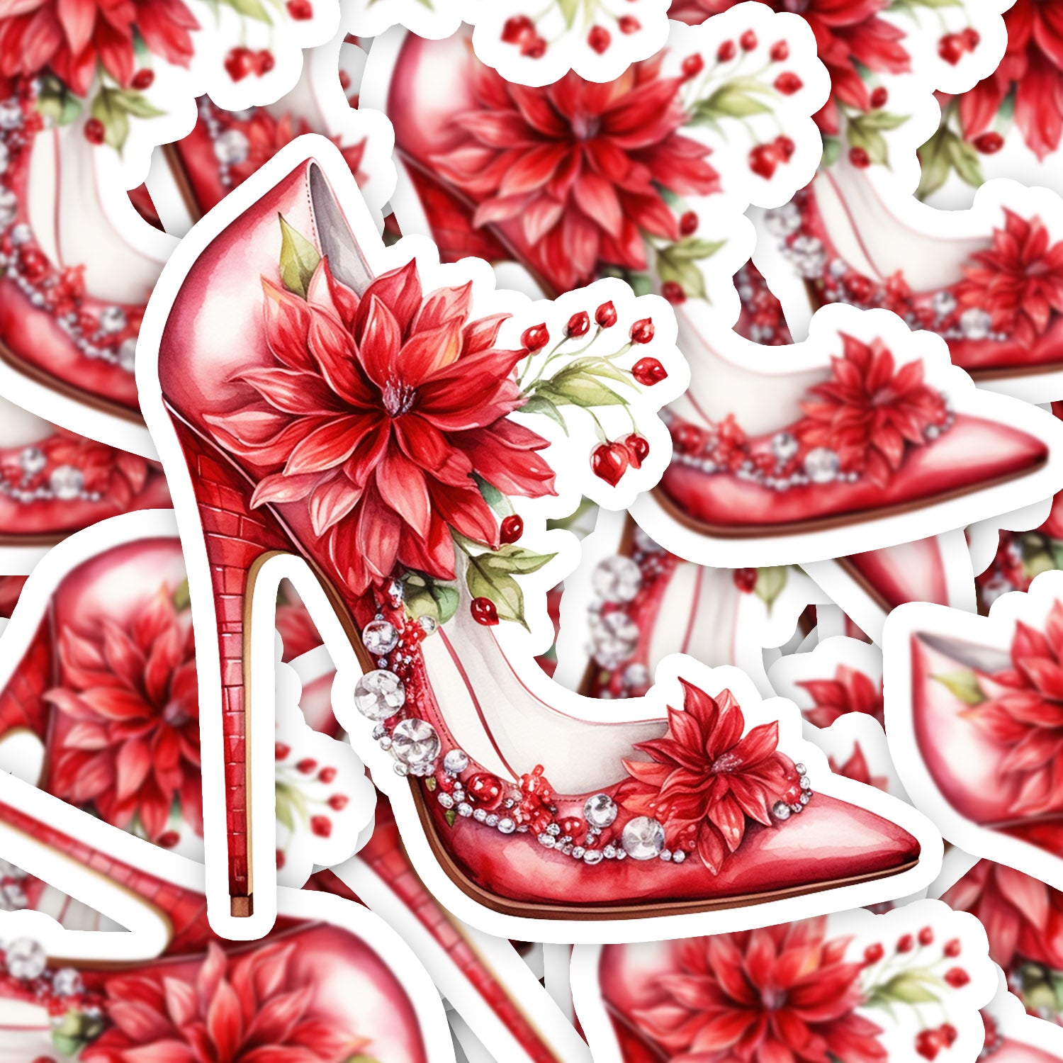 Set 5 bucati, Sticker decorativ, Pantofi cu toc pentru craciun Amelia, Rezistent la apa, NO15242, 6 cm, Multicolor