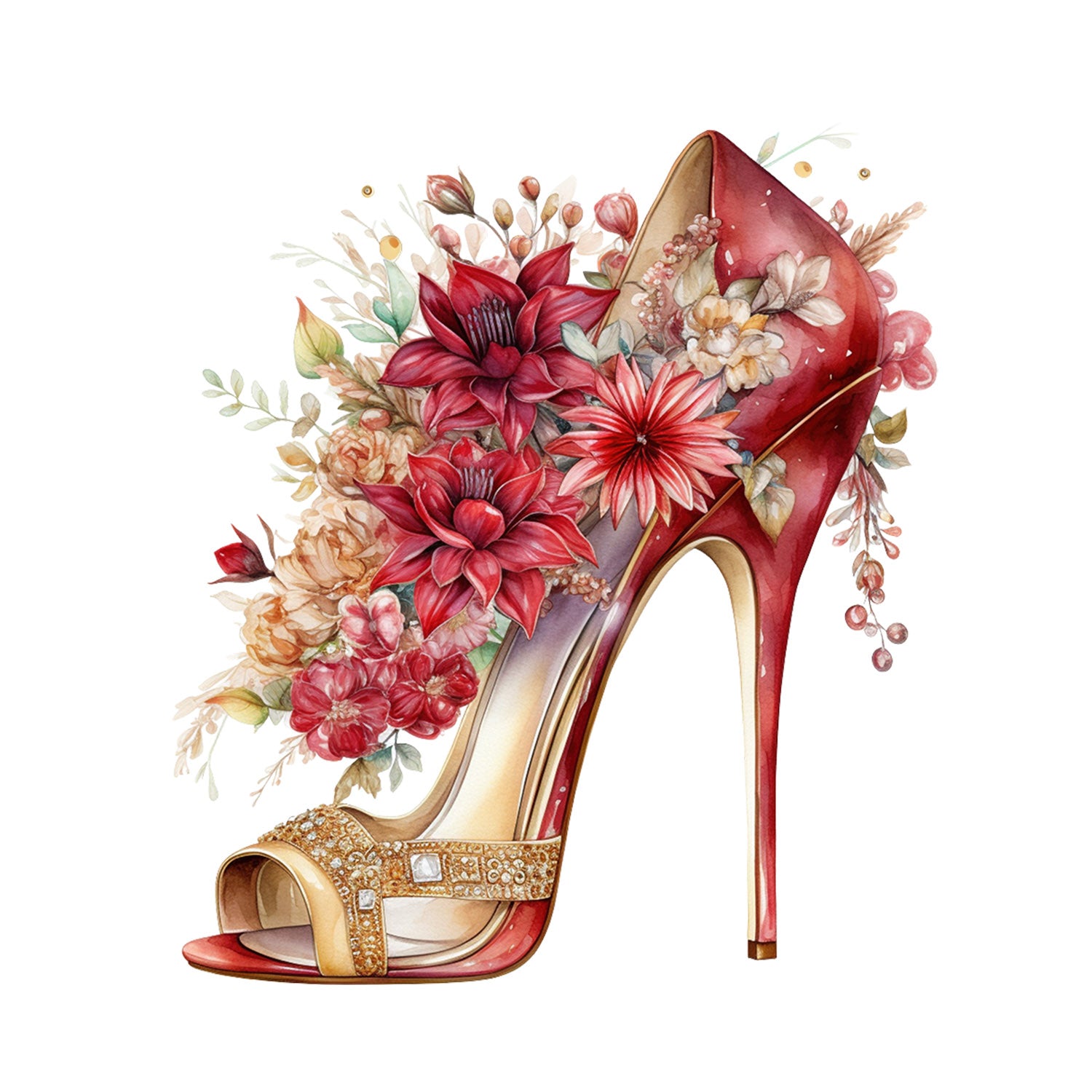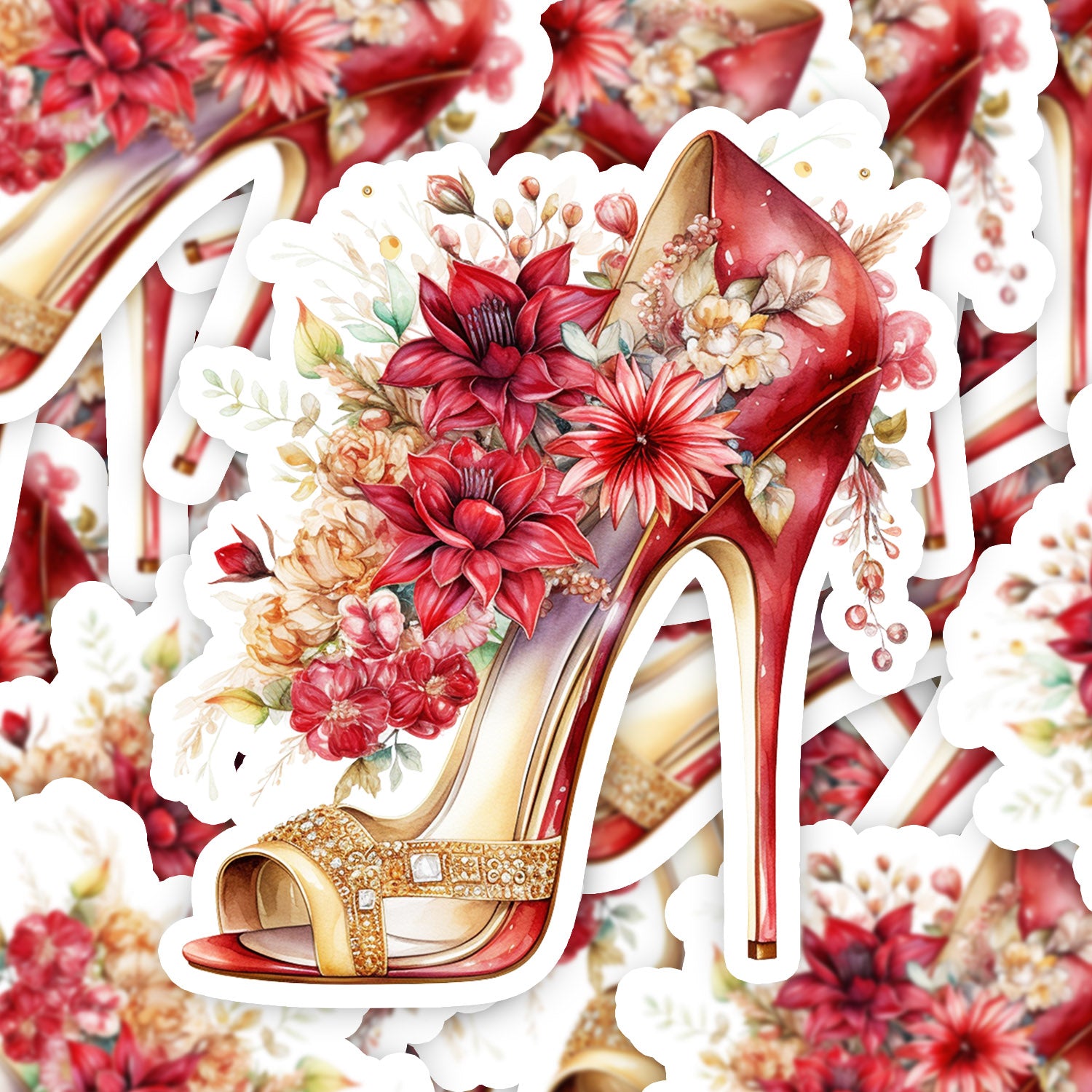Set 5 bucati, Sticker decorativ, Pantofi cu toc pentru craciun Beatrice, Rezistent la apa, NO15352, 6 cm, Multicolor