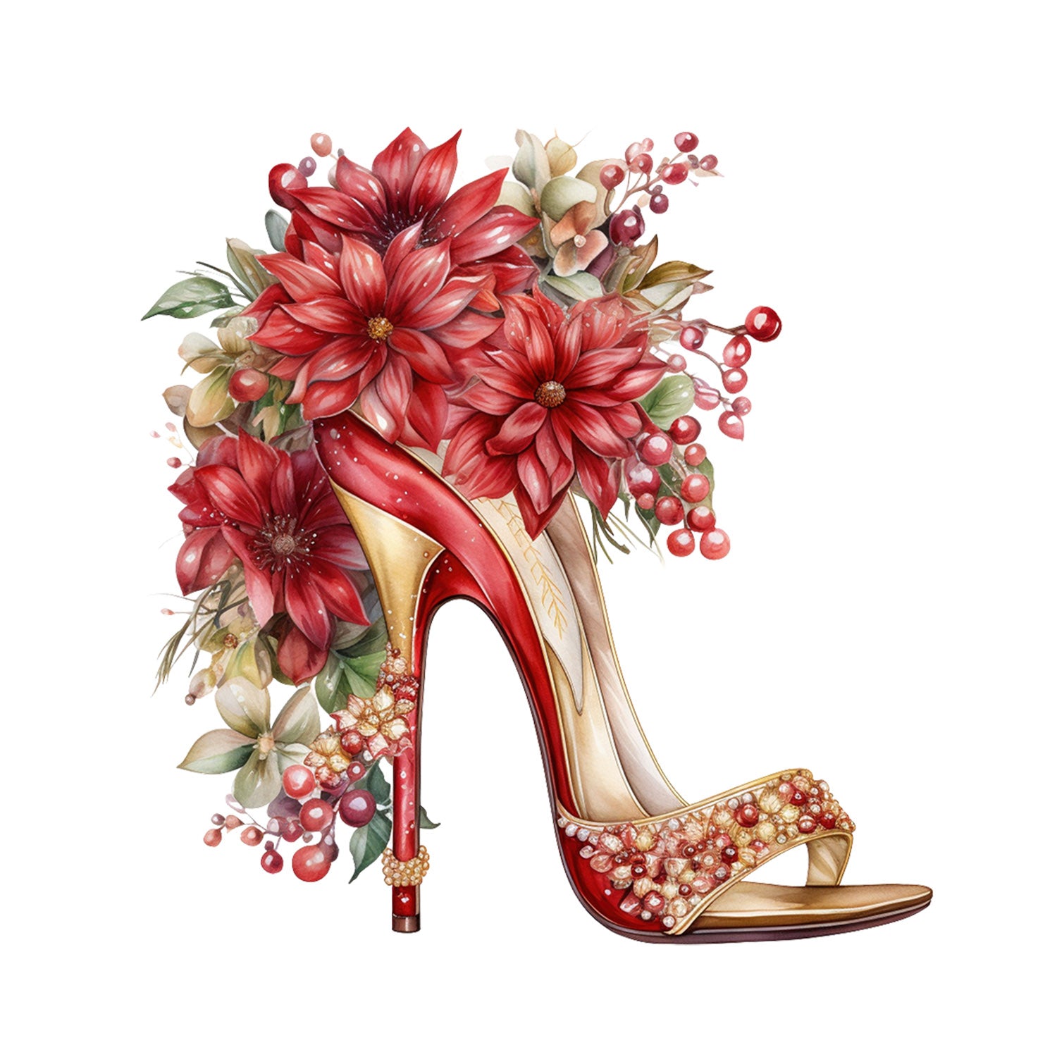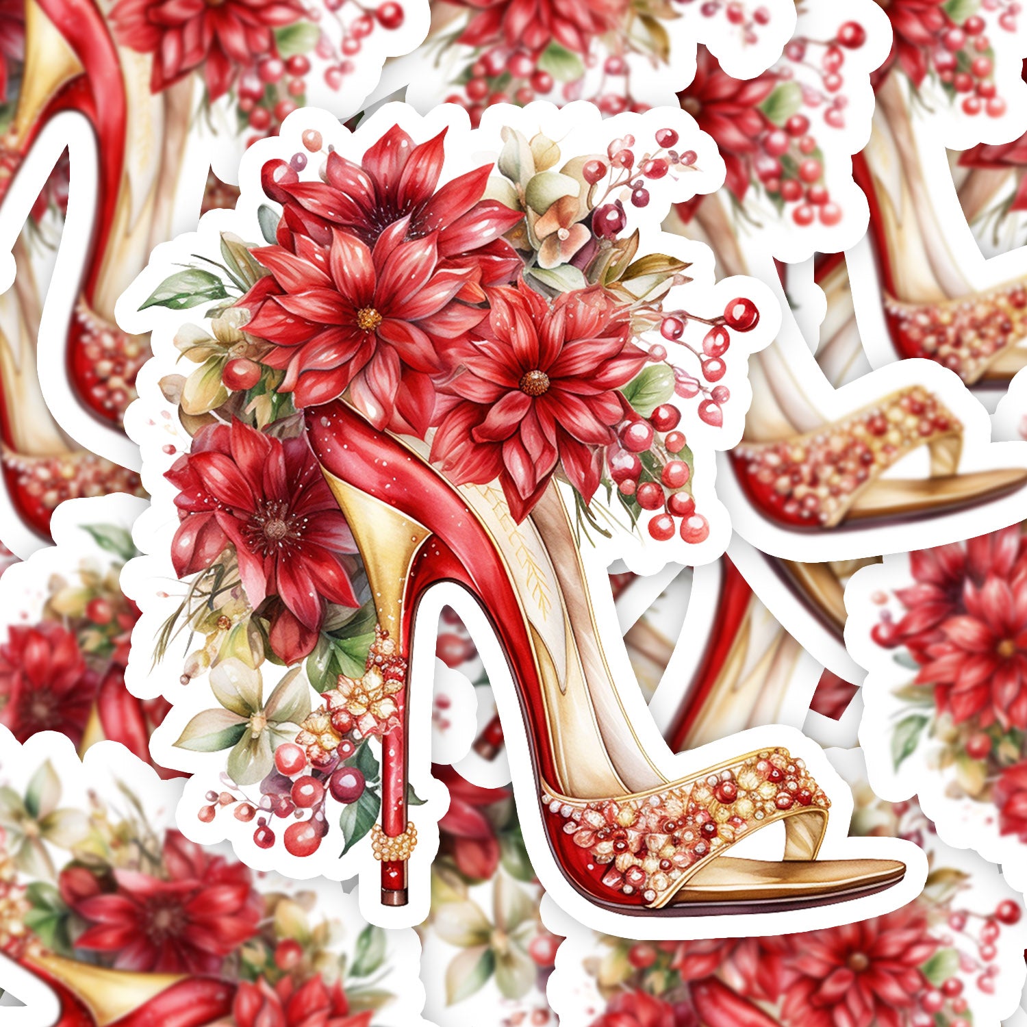 Set 5 bucati, Sticker decorativ, Pantofi cu toc pentru craciun Carina, Rezistent la apa, NO13150, 6 cm, Multicolor