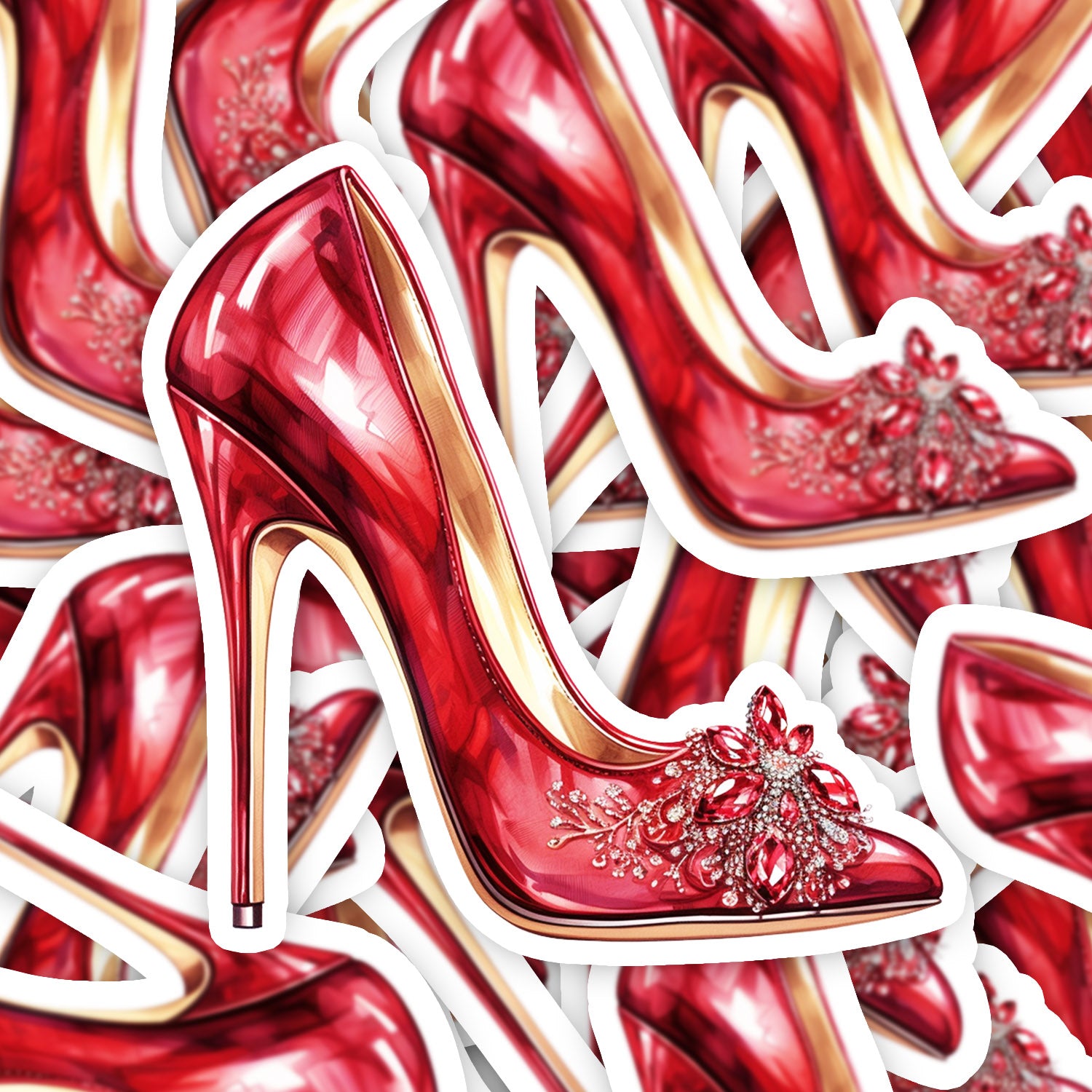 Set 5 bucati, Sticker decorativ, Pantofi cu toc pentru craciun Emma, Rezistent la apa, NO15001, 6 cm, Multicolor