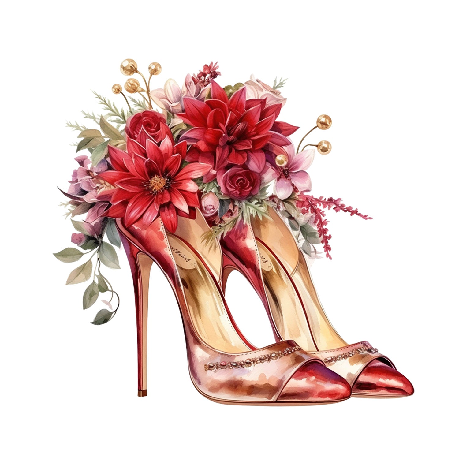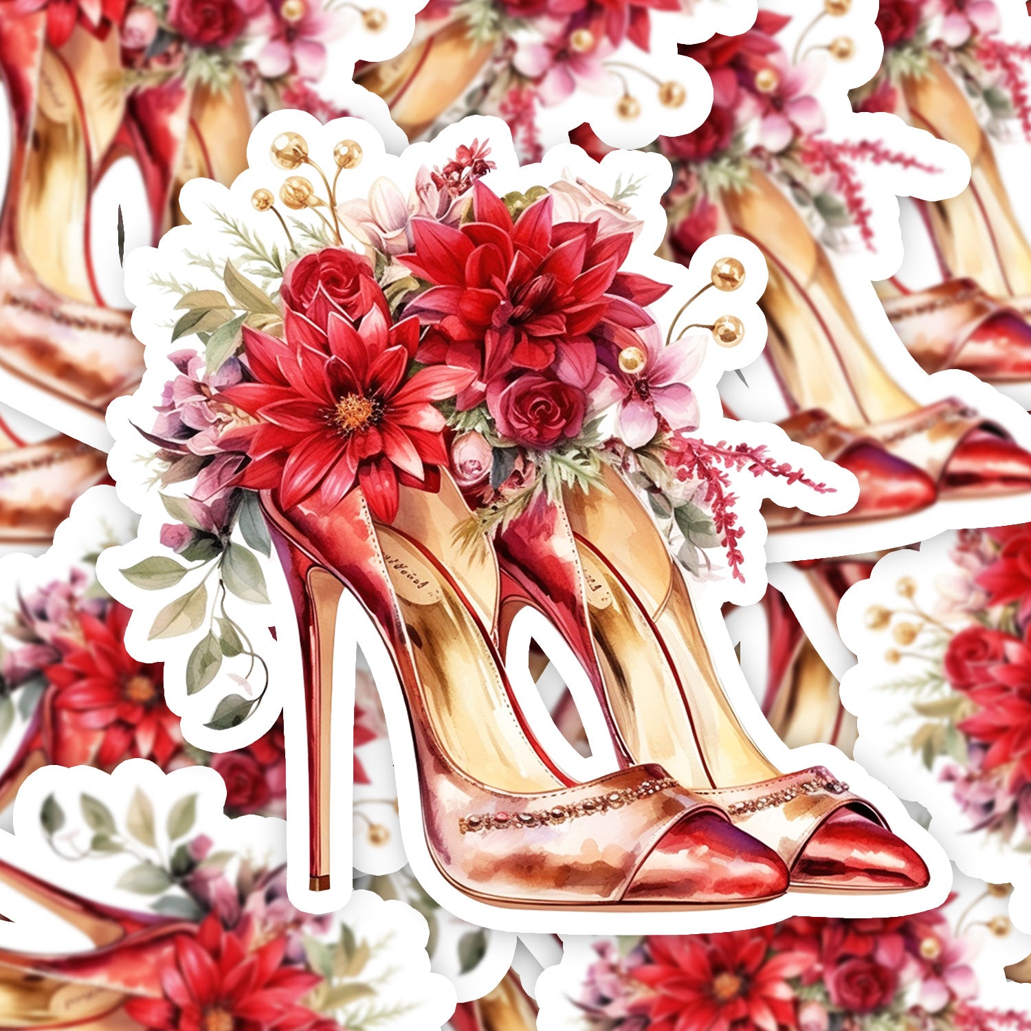 Set 5 bucati, Sticker decorativ, Pantofi cu toc pentru craciun Isabela, Rezistent la apa, NO15478, 6 cm, Multicolor