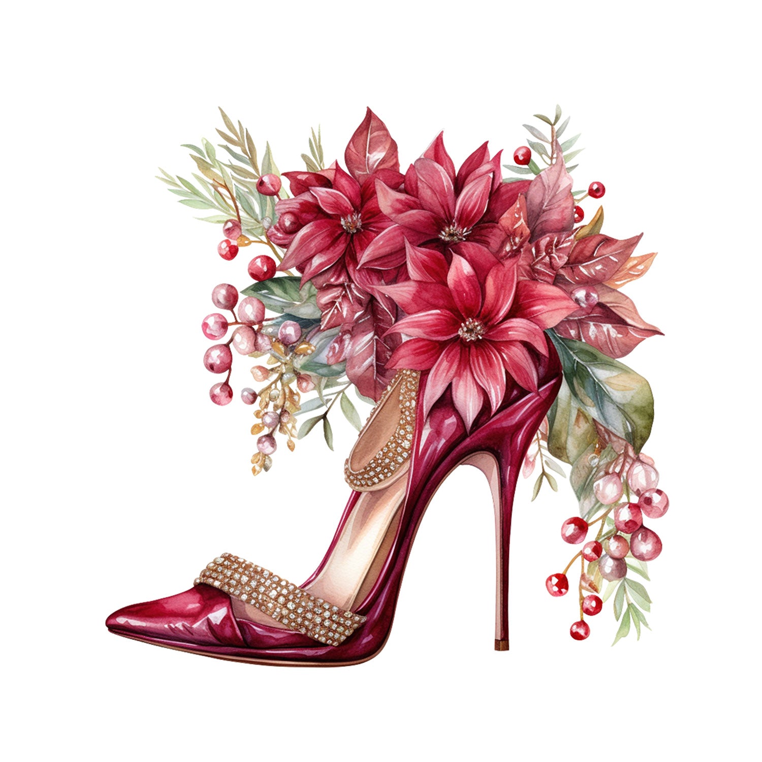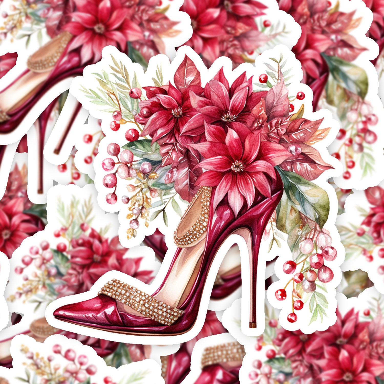 Set 5 bucati, Sticker decorativ, Pantofi cu toc pentru craciun Mia, Rezistent la apa, NO11282, 6 cm, Multicolor