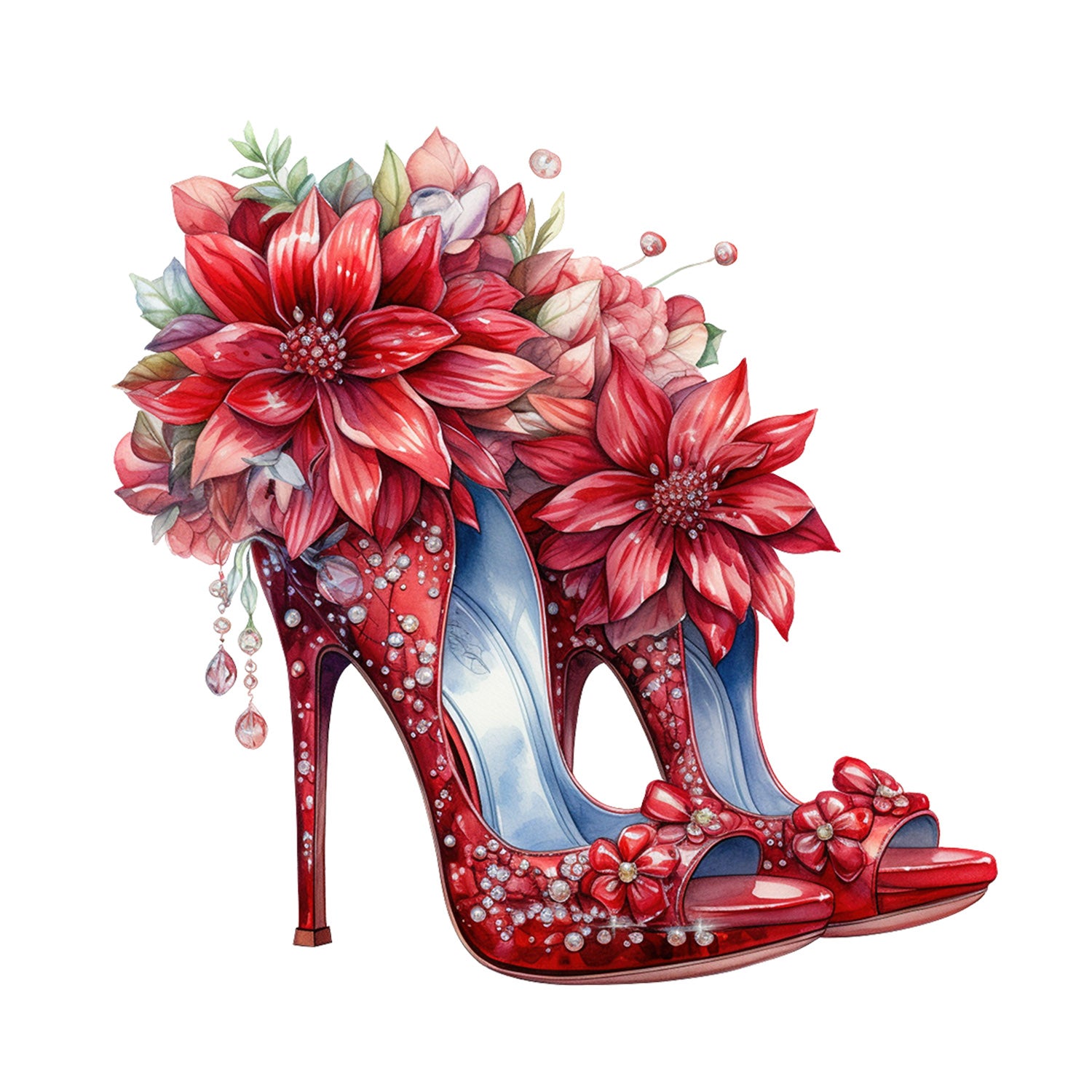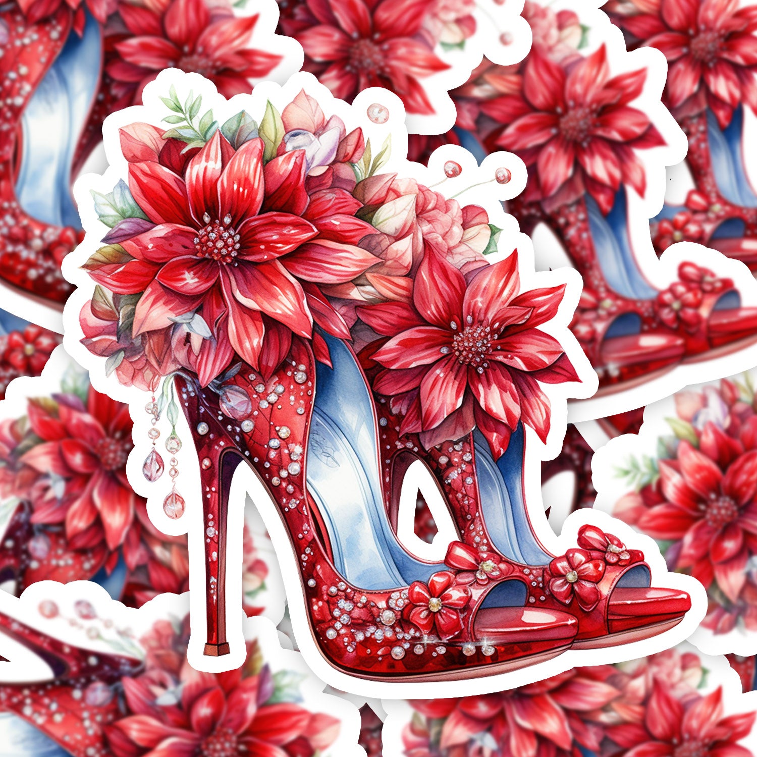 Set 5 bucati, Sticker decorativ, Pantofi cu toc pentru craciun Olivia, Rezistent la apa, NO12156, 6 cm, Multicolor