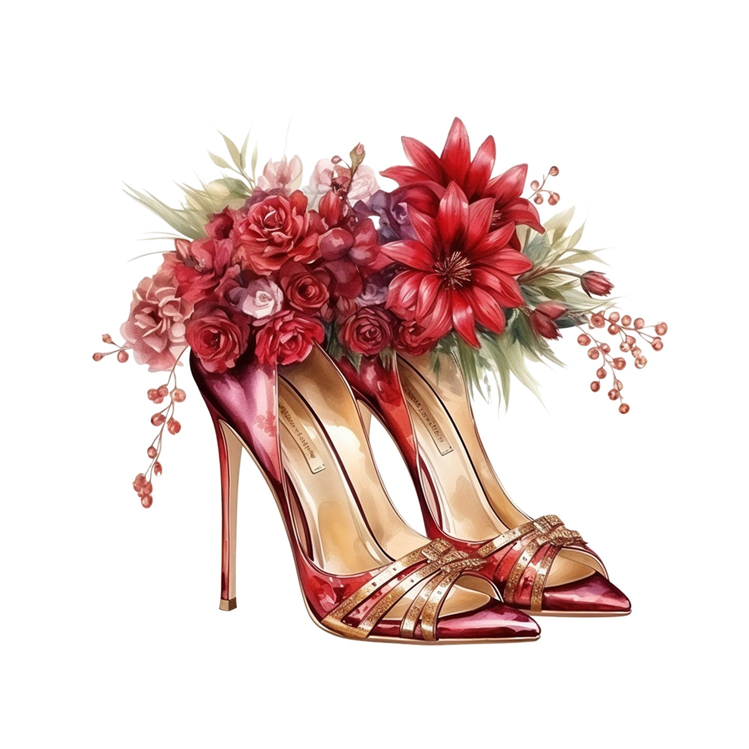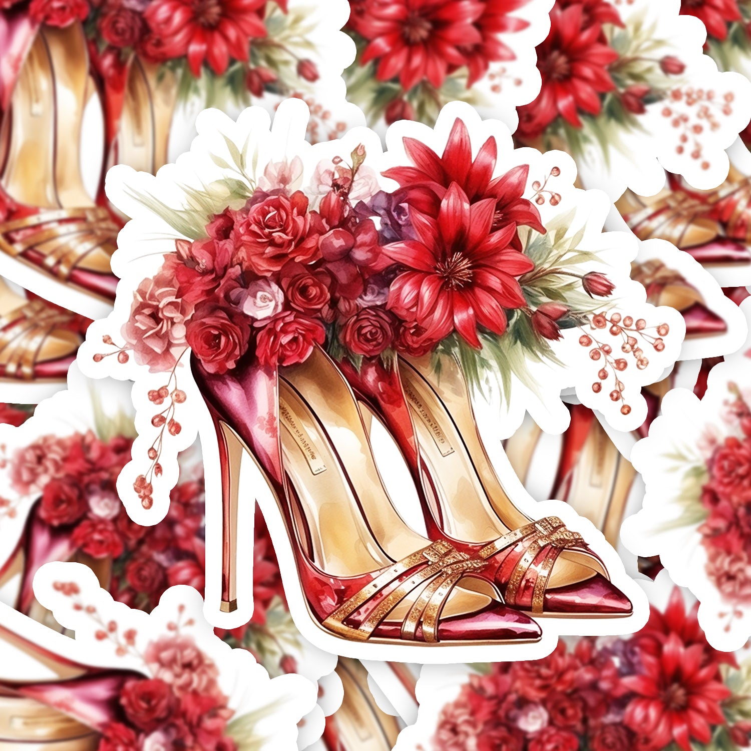Set 5 bucati, Sticker decorativ, Pantofi cu toc pentru craciun Sophia, Rezistent la apa, NO10501, 6 cm, Multicolor