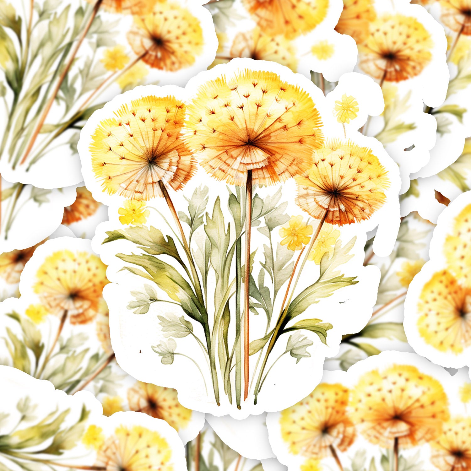 Set 5 bucati, Sticker decorativ, Papadii cu frunze, Rezistent la apa, NO13736, 6 cm, Multicolor