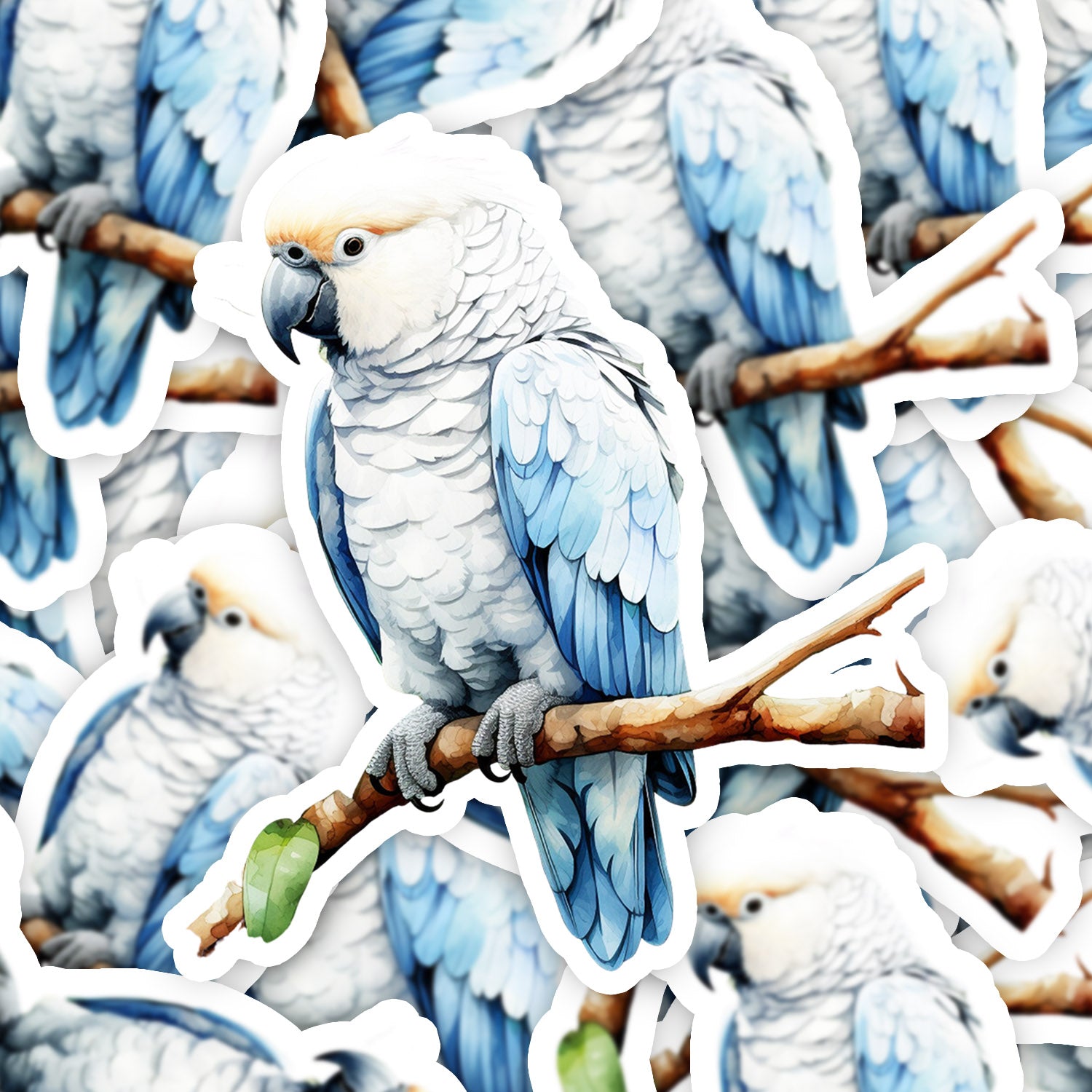 Set 5 bucati, Sticker decorativ, Papagal alb pe creanga, Rezistent la apa, NO14805, 6 cm, Multicolor