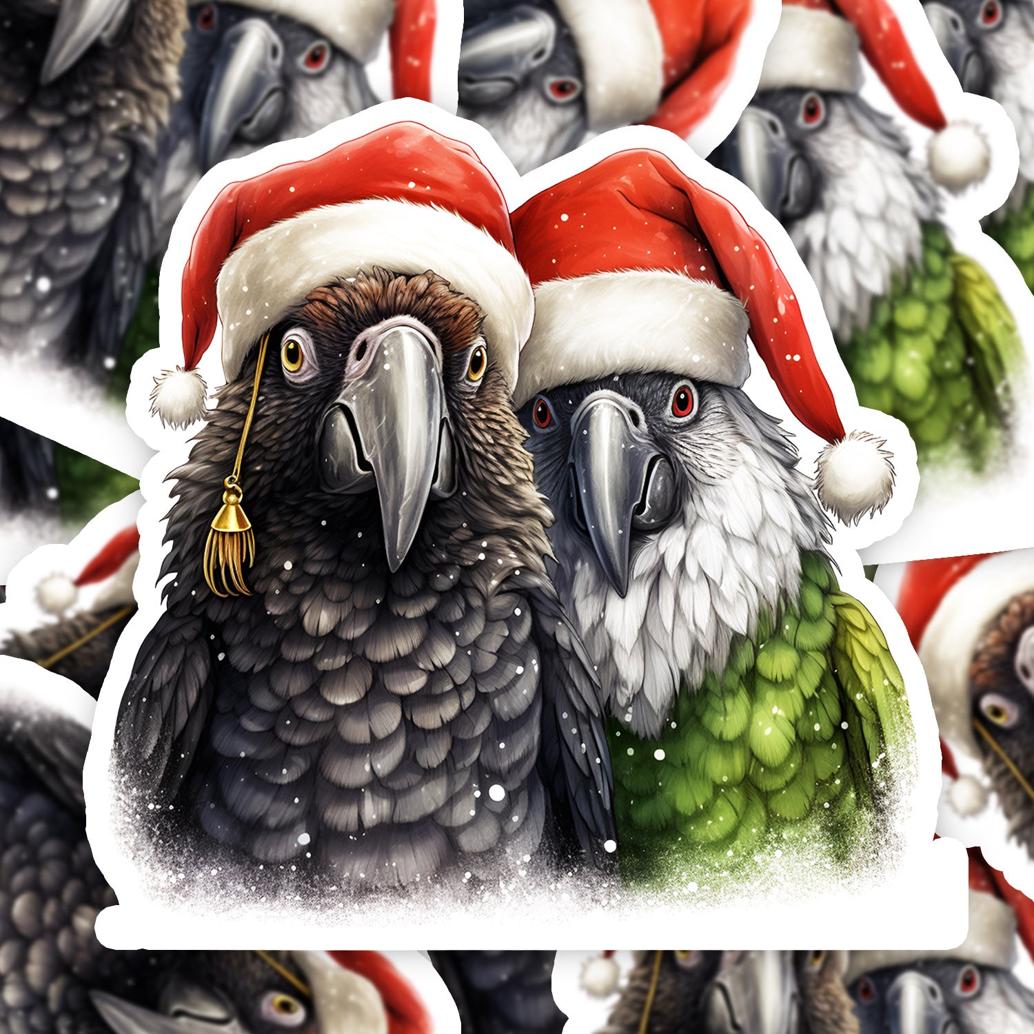 Set 5 bucati, Sticker decorativ, Papagali de craciun, Rezistent la apa, NO15043, 6 cm, Multicolor