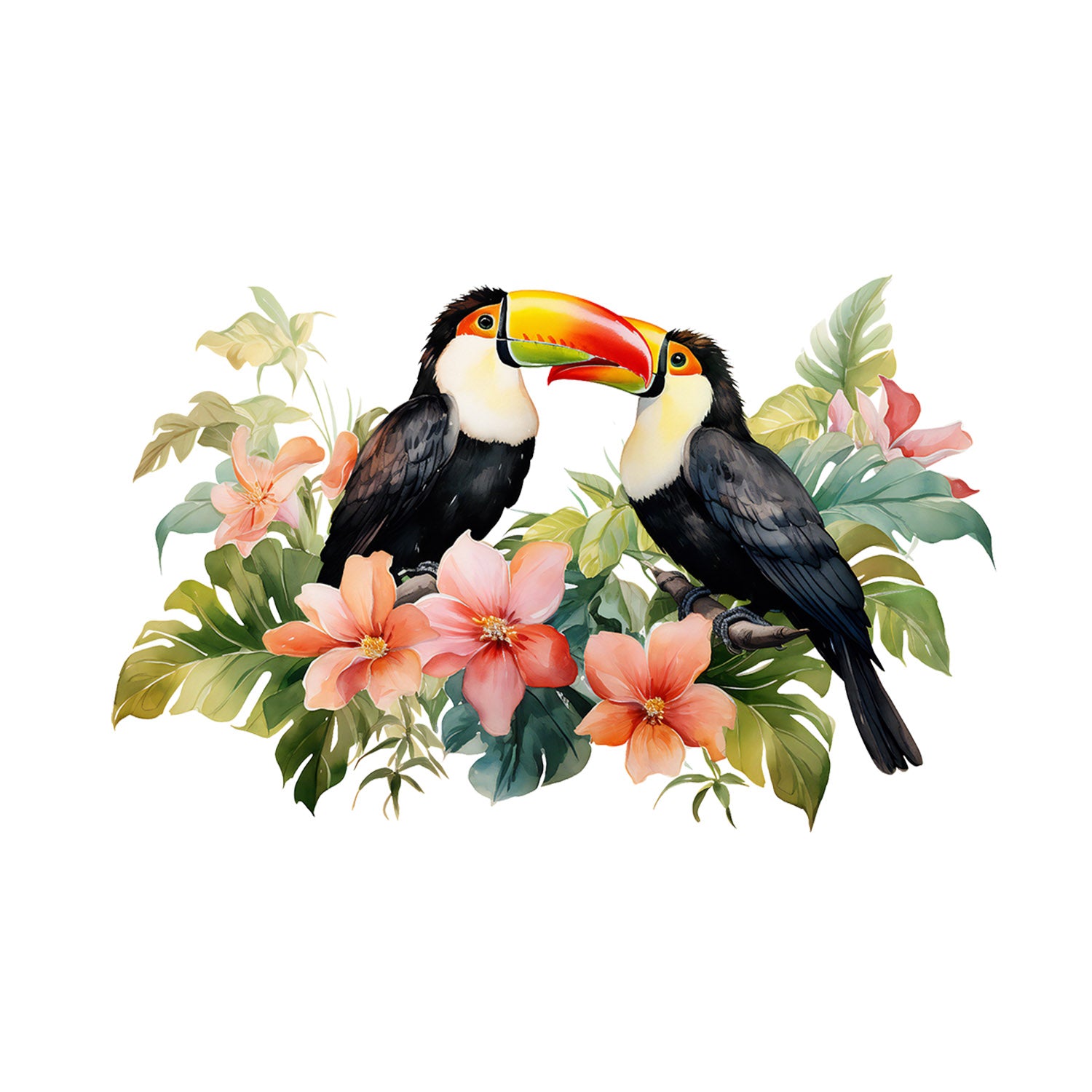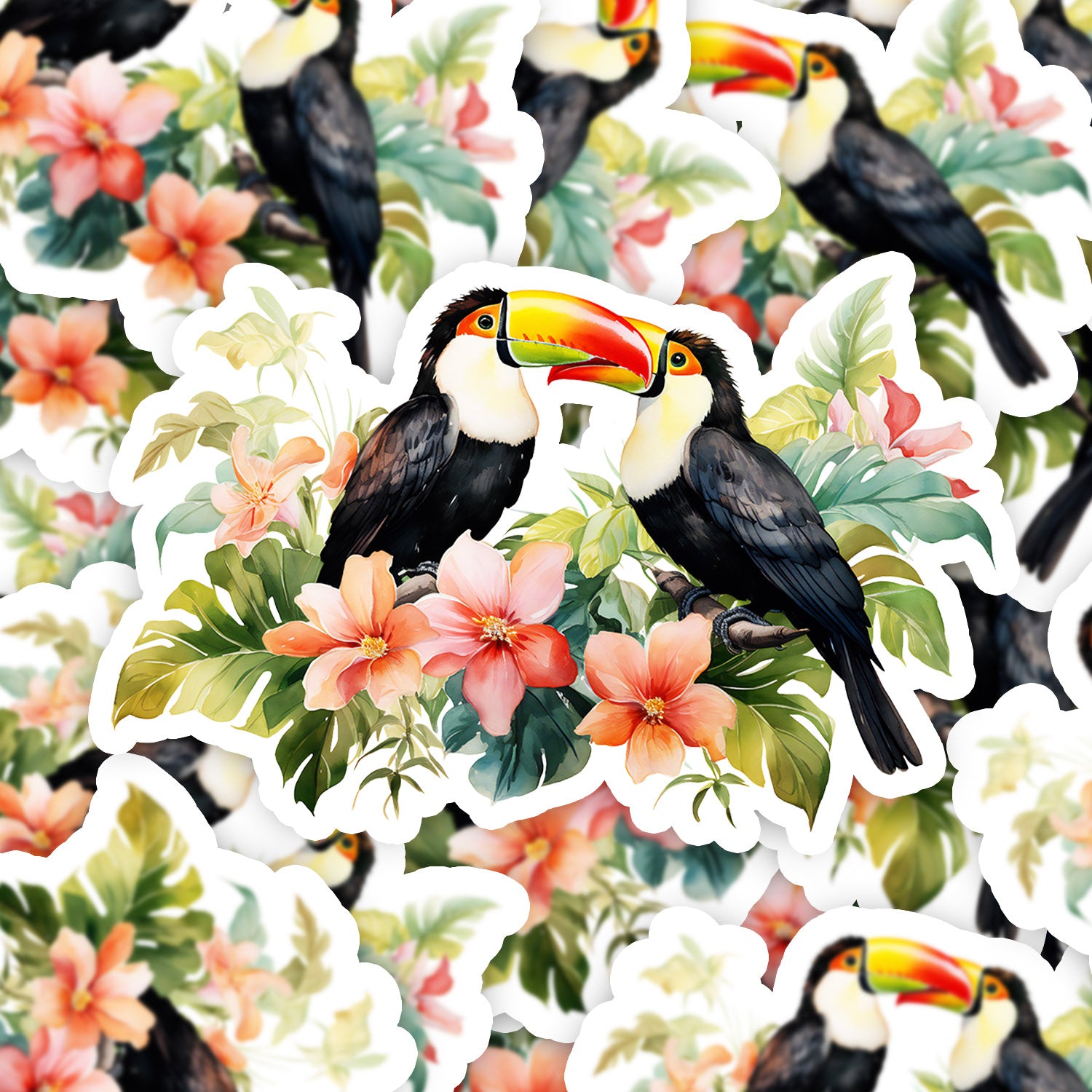 Set 5 bucati, Sticker decorativ, Papagali Tucan la taifas, Rezistent la apa, NO13532, 6 cm, Multicolor