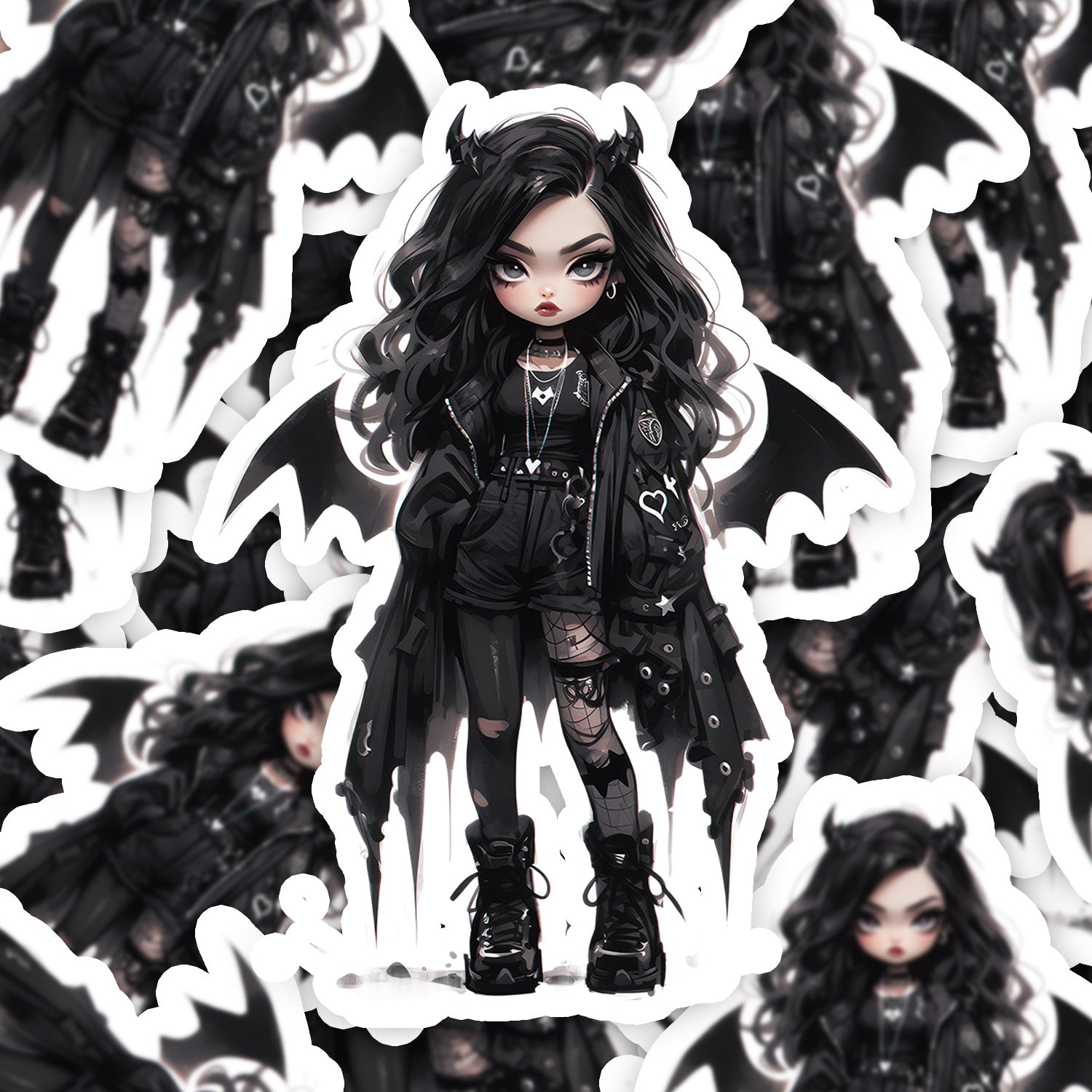 Set 5 bucati, Sticker decorativ, Papusa demon Allison, Rezistent la apa, NO15135, 6 cm, Multicolor