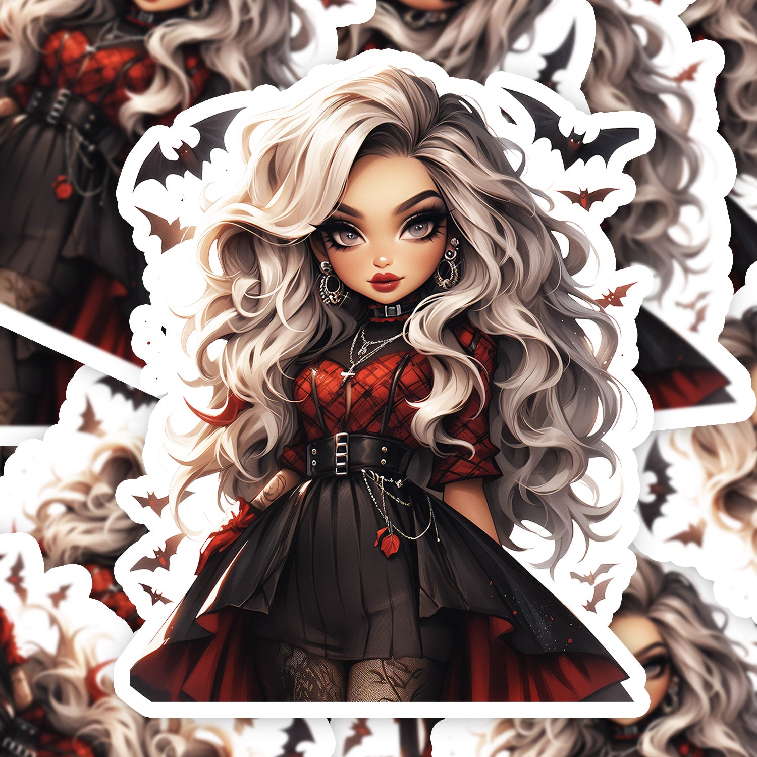 Set 5 bucati, Sticker decorativ, Papusa demon Amy, Rezistent la apa, NO14799, 6 cm, Multicolor