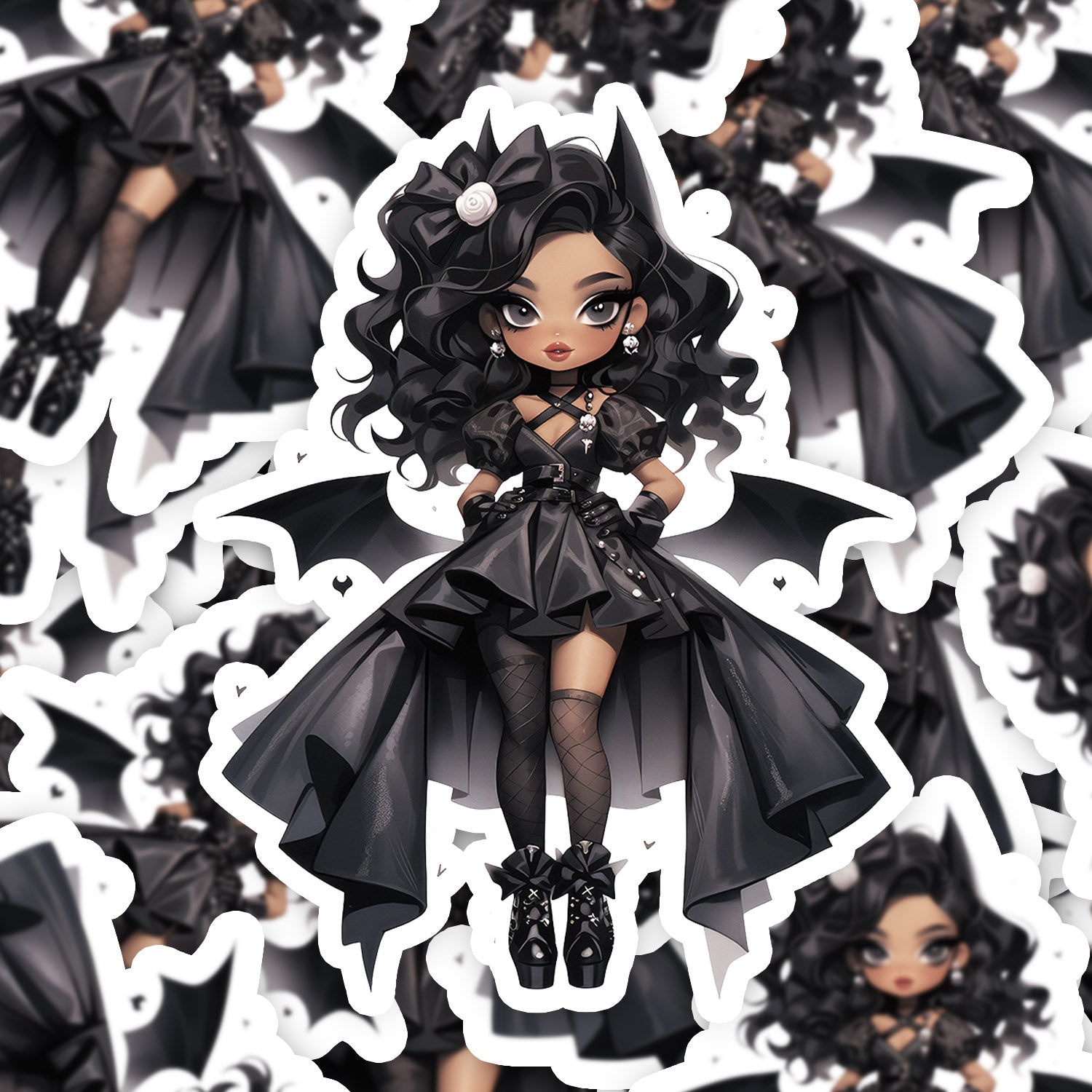 Set 5 bucati, Sticker decorativ, Papusa demon Fathia, Rezistent la apa, NO13933, 6 cm, Multicolor