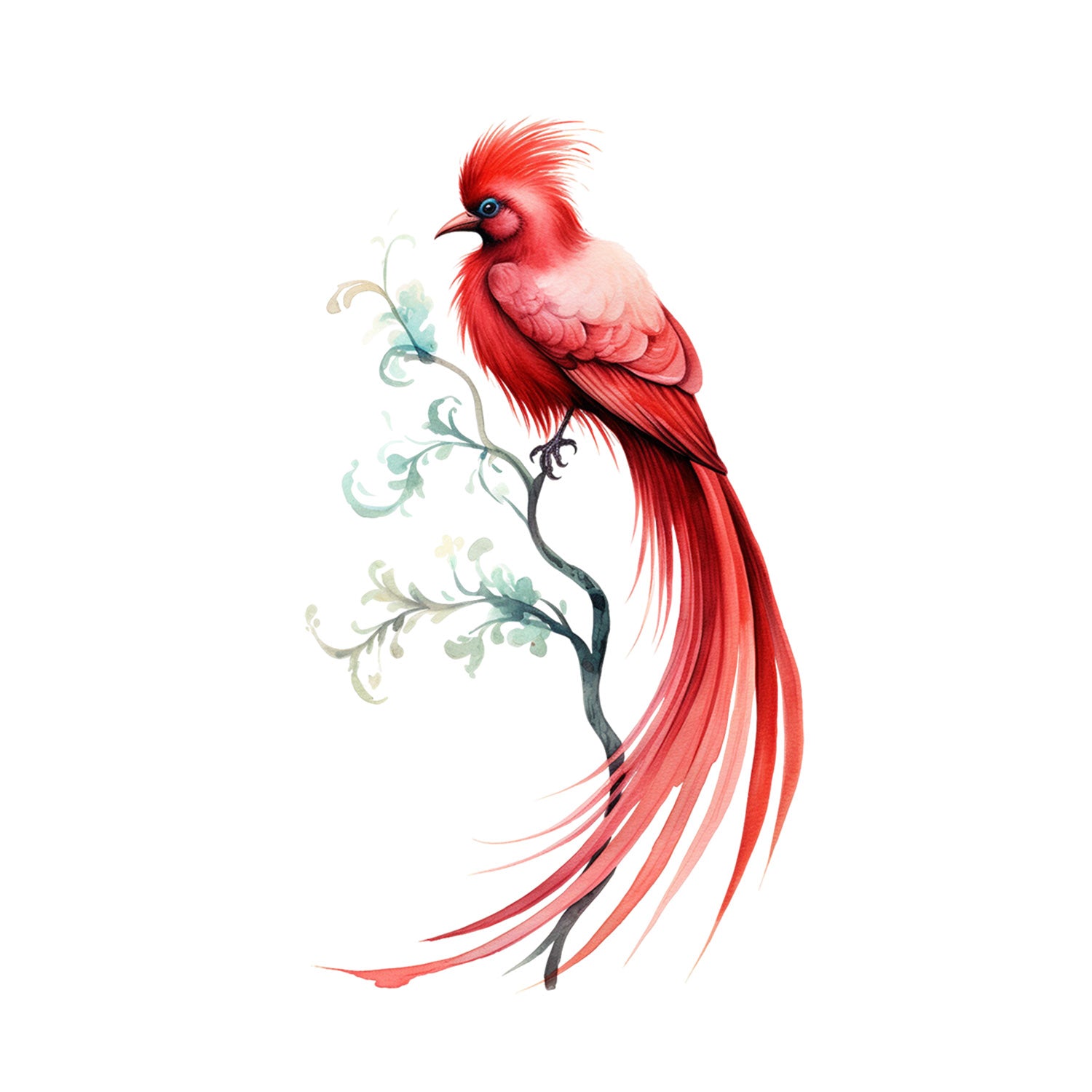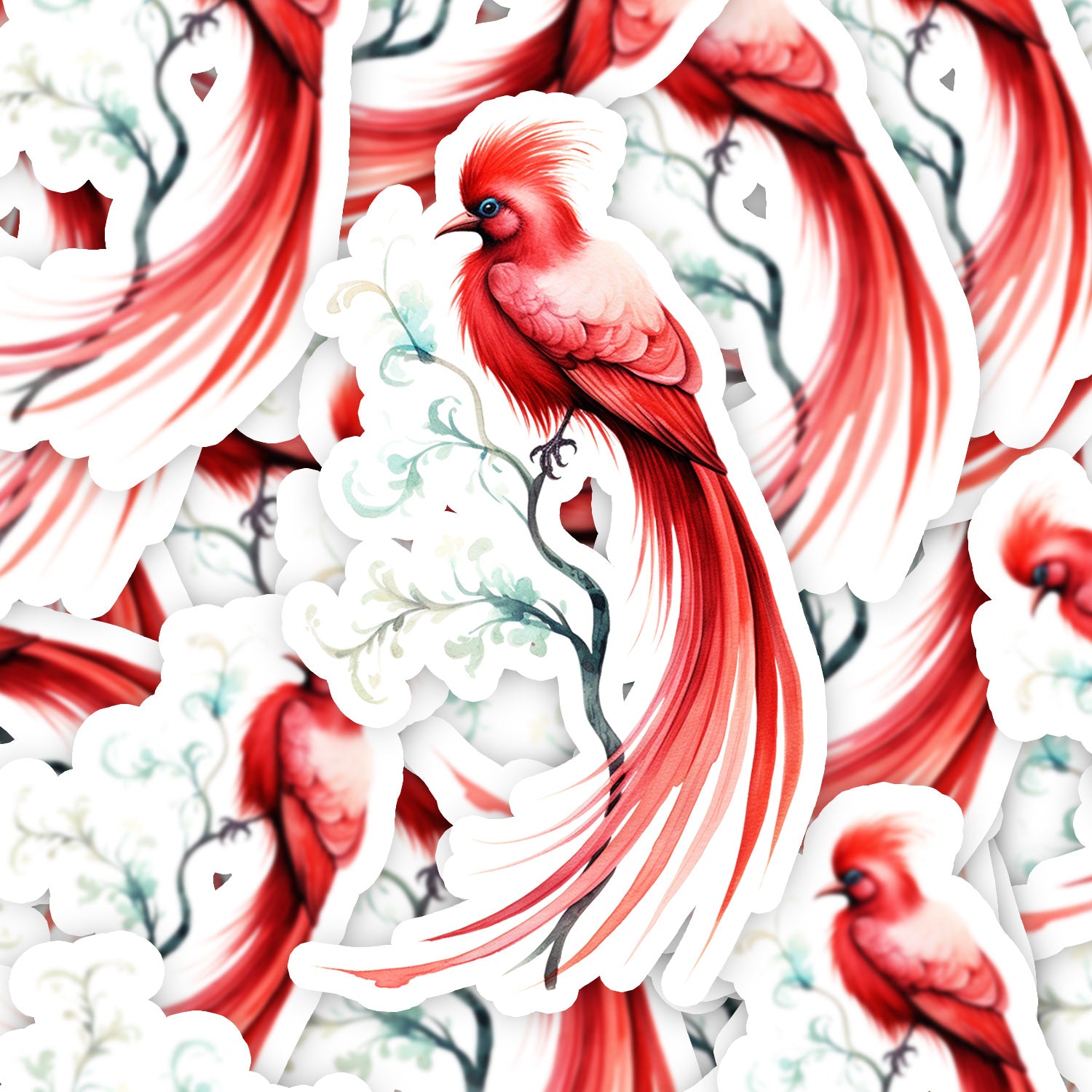 Set 5 bucati, Sticker decorativ, Pasarea Cardinal rosu pe creanga, Rezistent la apa, NO13296, 6 cm, Multicolor