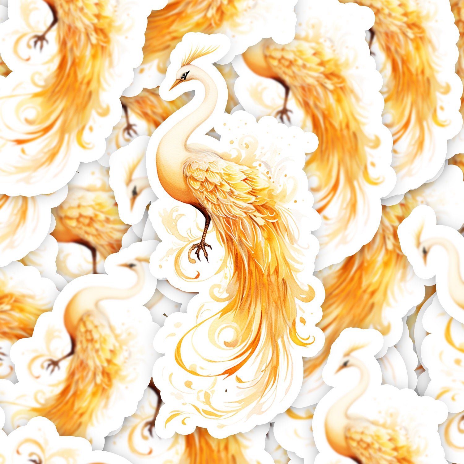 Set 5 bucati, Sticker decorativ, Pasarea de foc galbena, Rezistent la apa, NO15342, 6 cm, Multicolor