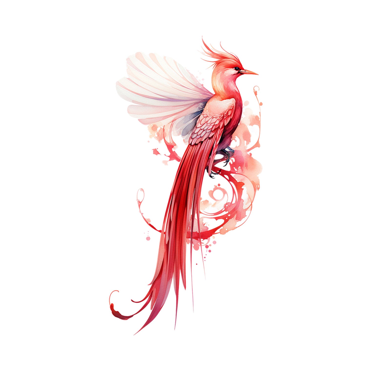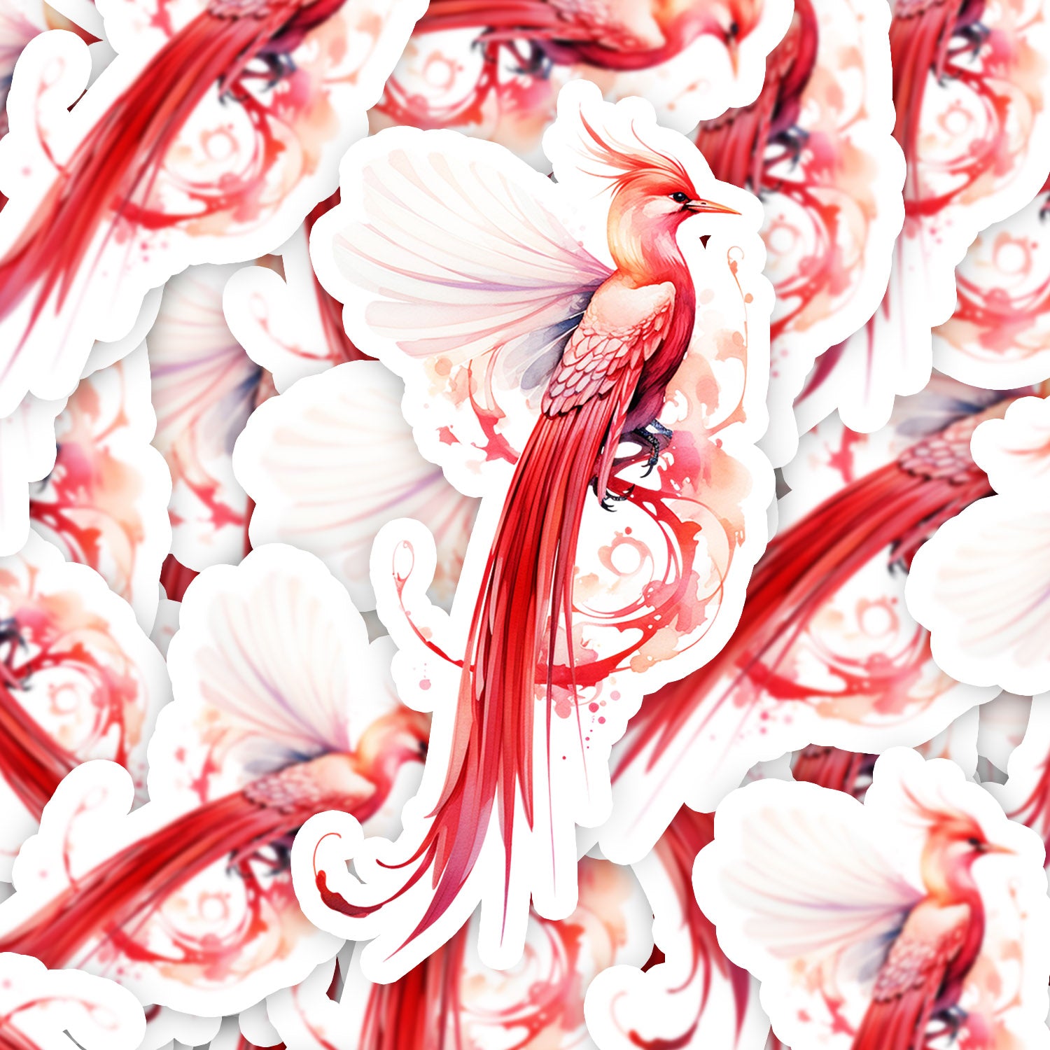 Set 5 bucati, Sticker decorativ, Pasarea exotica rosie, Rezistent la apa, NO11376, 6 cm, Multicolor