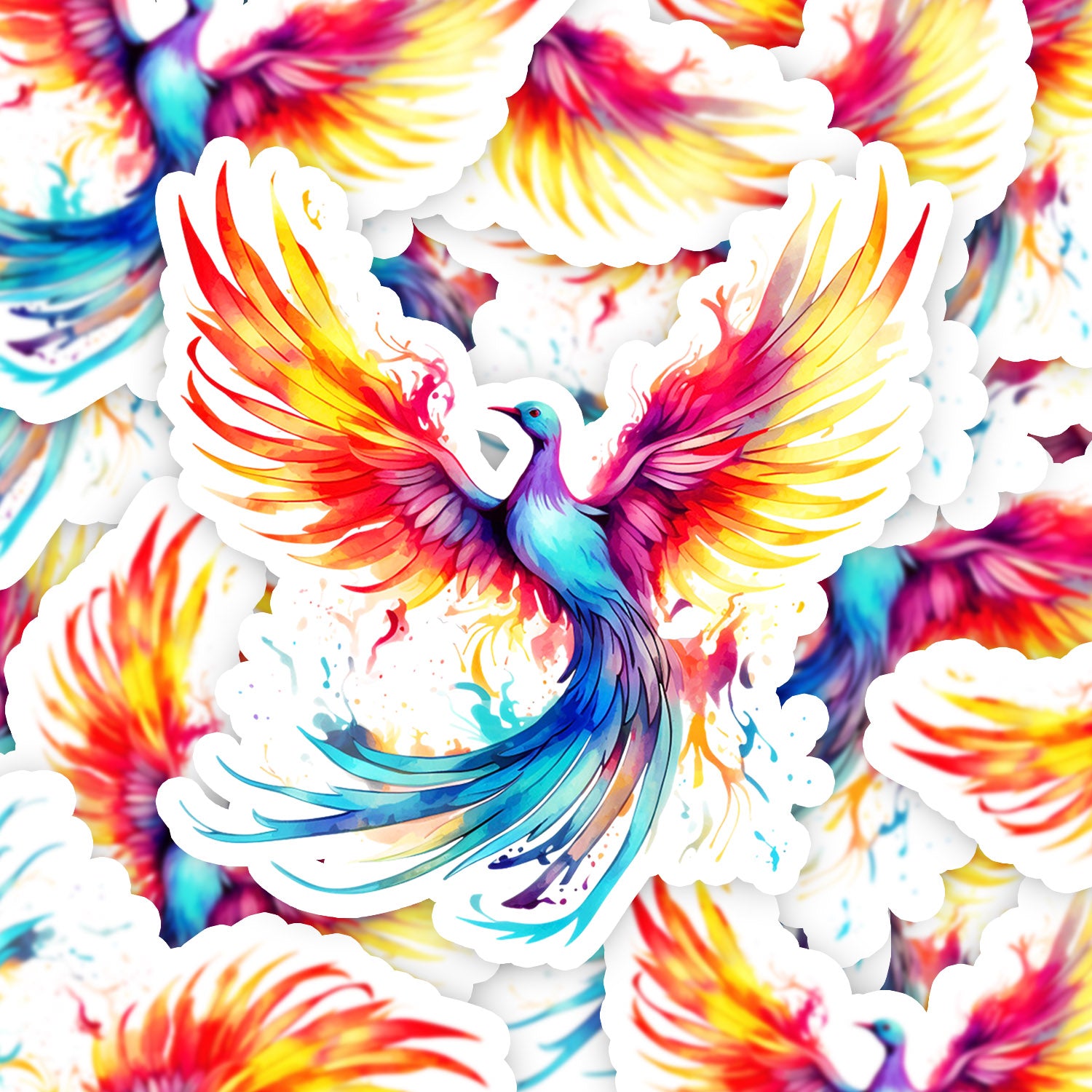 Set 5 bucati, Sticker decorativ, Pasarea Pheonix Opal, Rezistent la apa, NO11341, 6 cm, Multicolor
