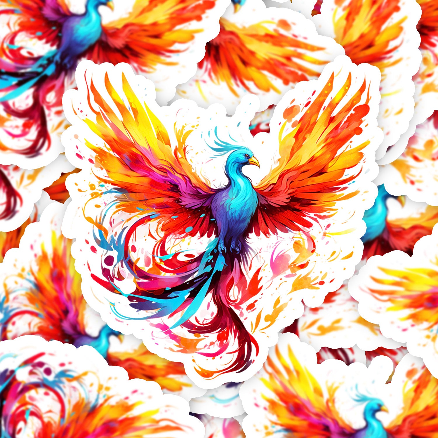 Set 5 bucati, Sticker decorativ, Pasarea Pheonix Sally, Rezistent la apa, NO13171, 6 cm, Multicolor