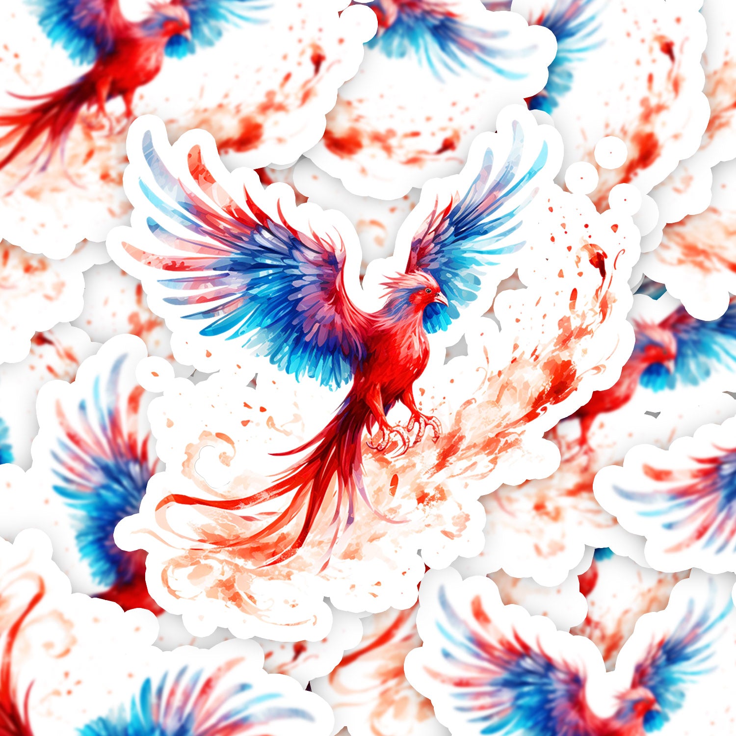 Set 5 bucati, Sticker decorativ, Pasarea Pheonix Thya, Rezistent la apa, NO10552, 6 cm, Multicolor