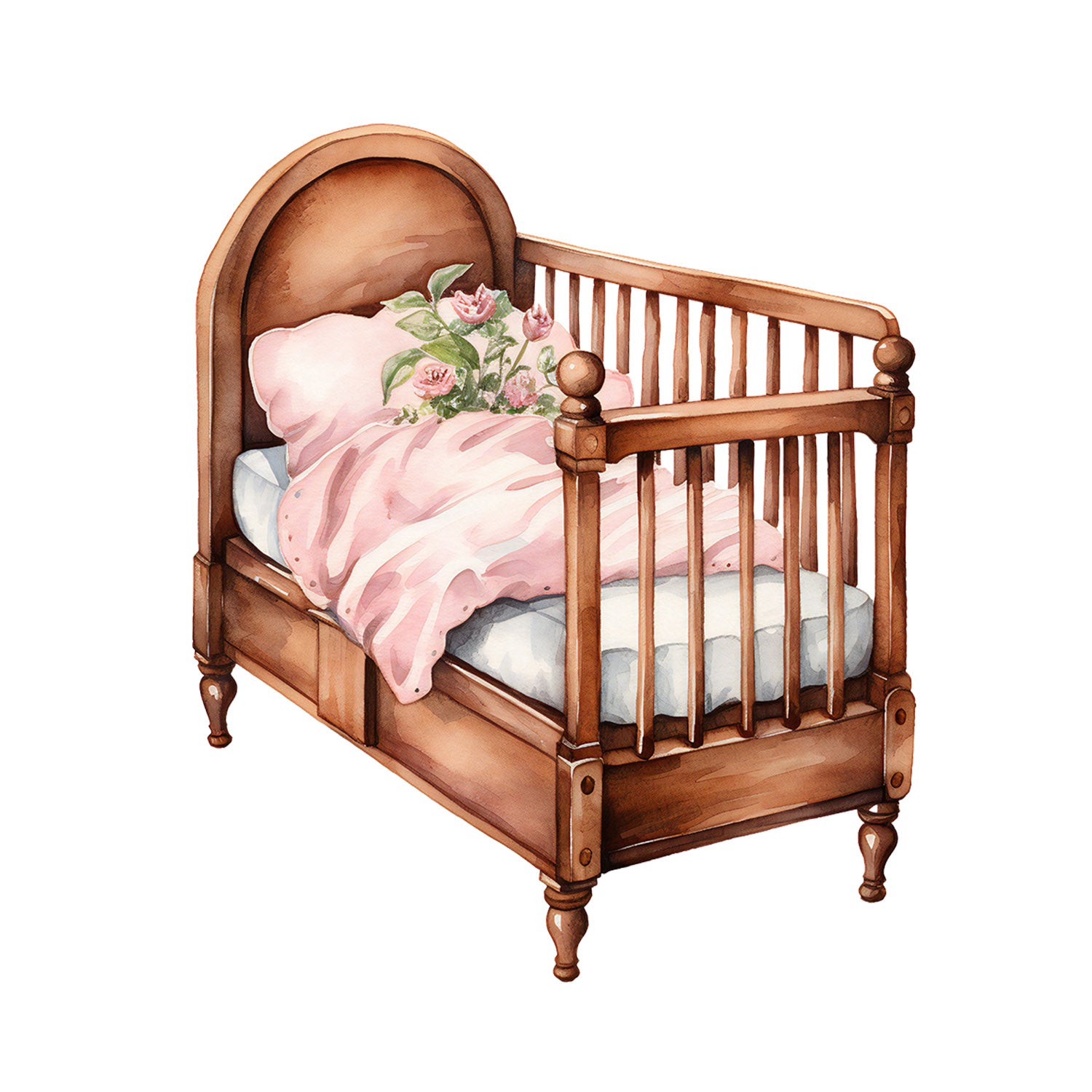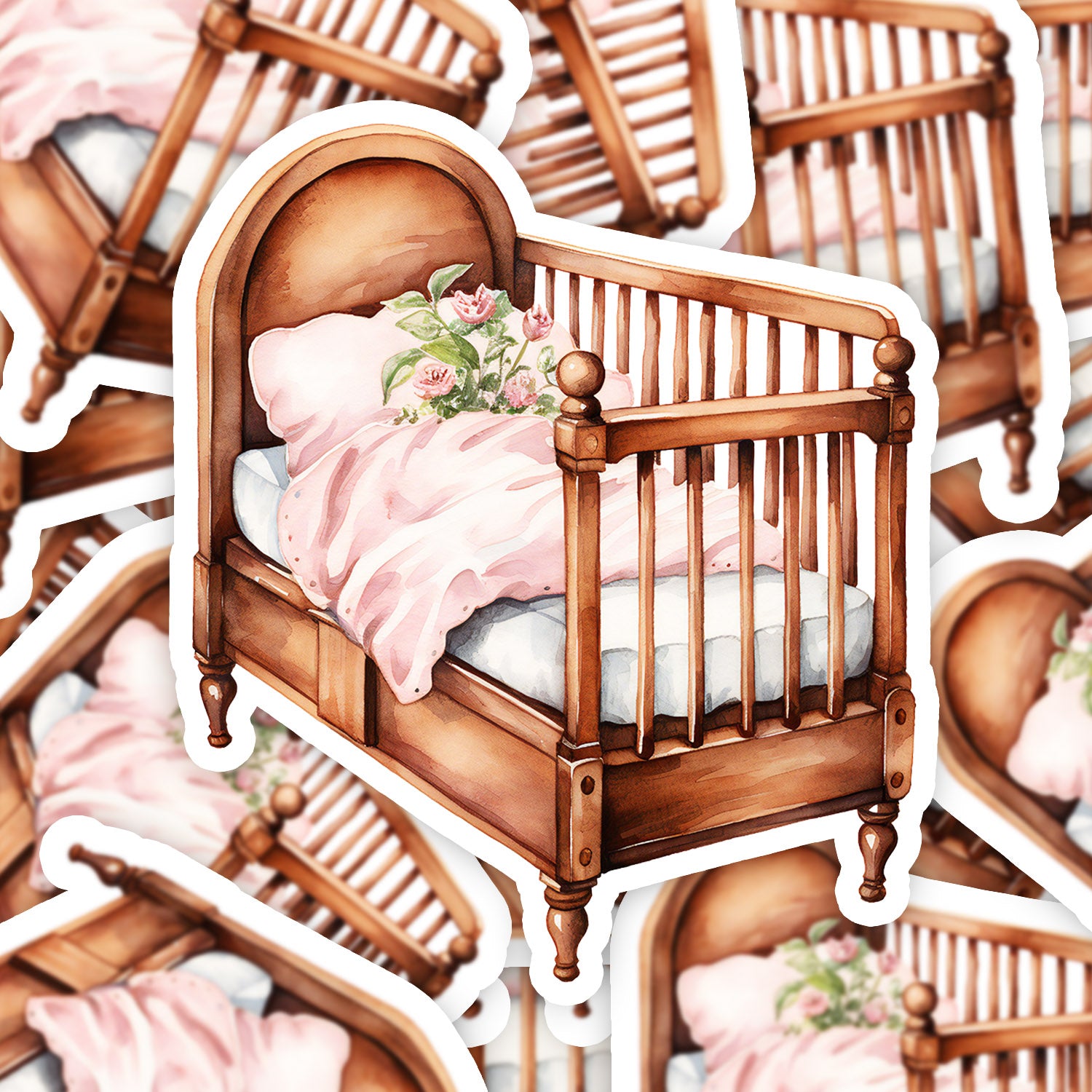 Set 5 bucati, Sticker decorativ, Patut de lemn pentru bebelusi, Rezistent la apa, NO14906, 6 cm, Multicolor