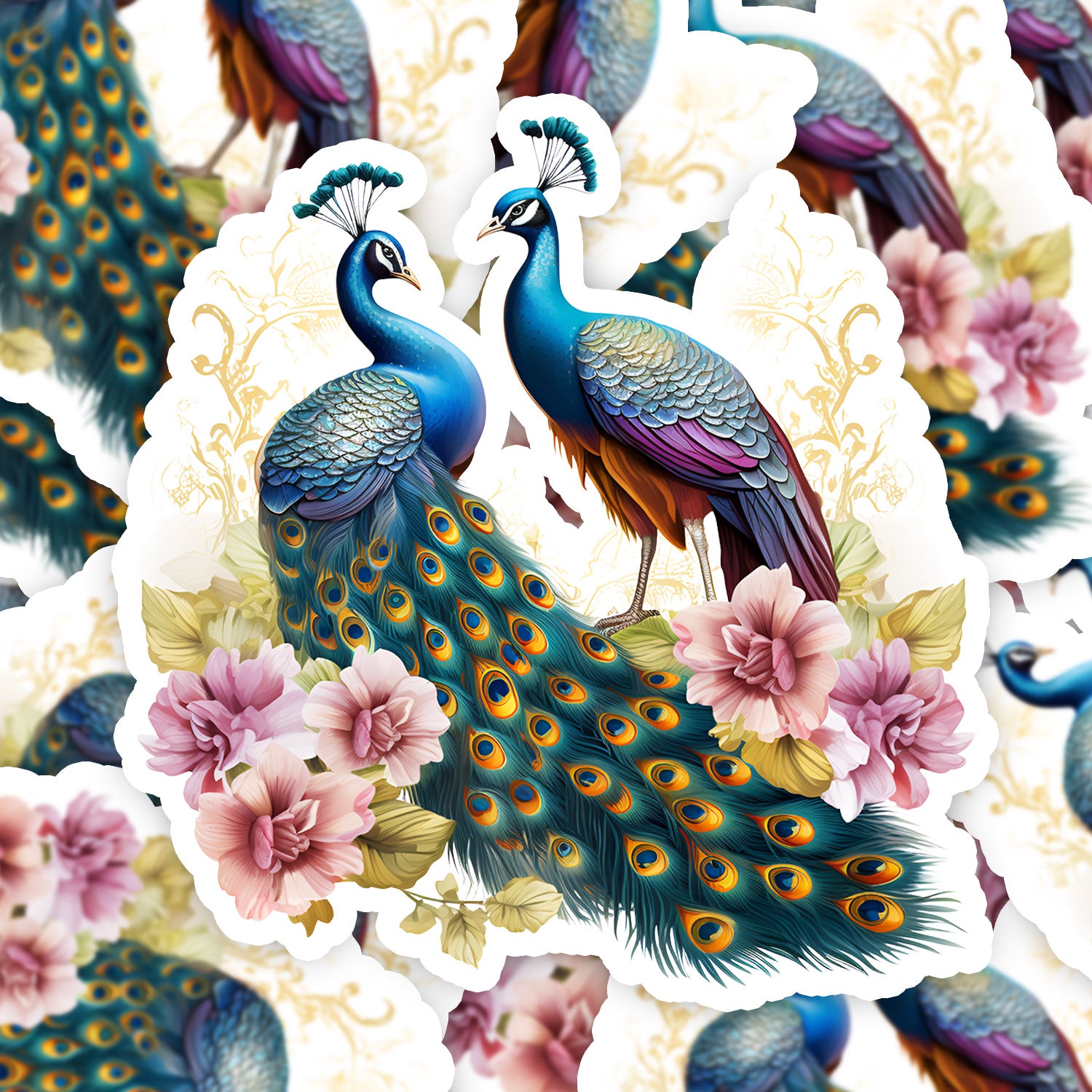 Set 5 bucati, Sticker decorativ, Paunii Love, Rezistent la apa, NO15956, 6 cm, Multicolor