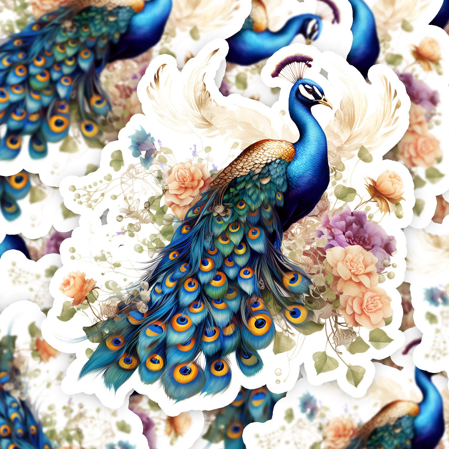 Set 5 bucati, Sticker decorativ, Paunul Luky, Rezistent la apa, NO11649, 6 cm, Multicolor