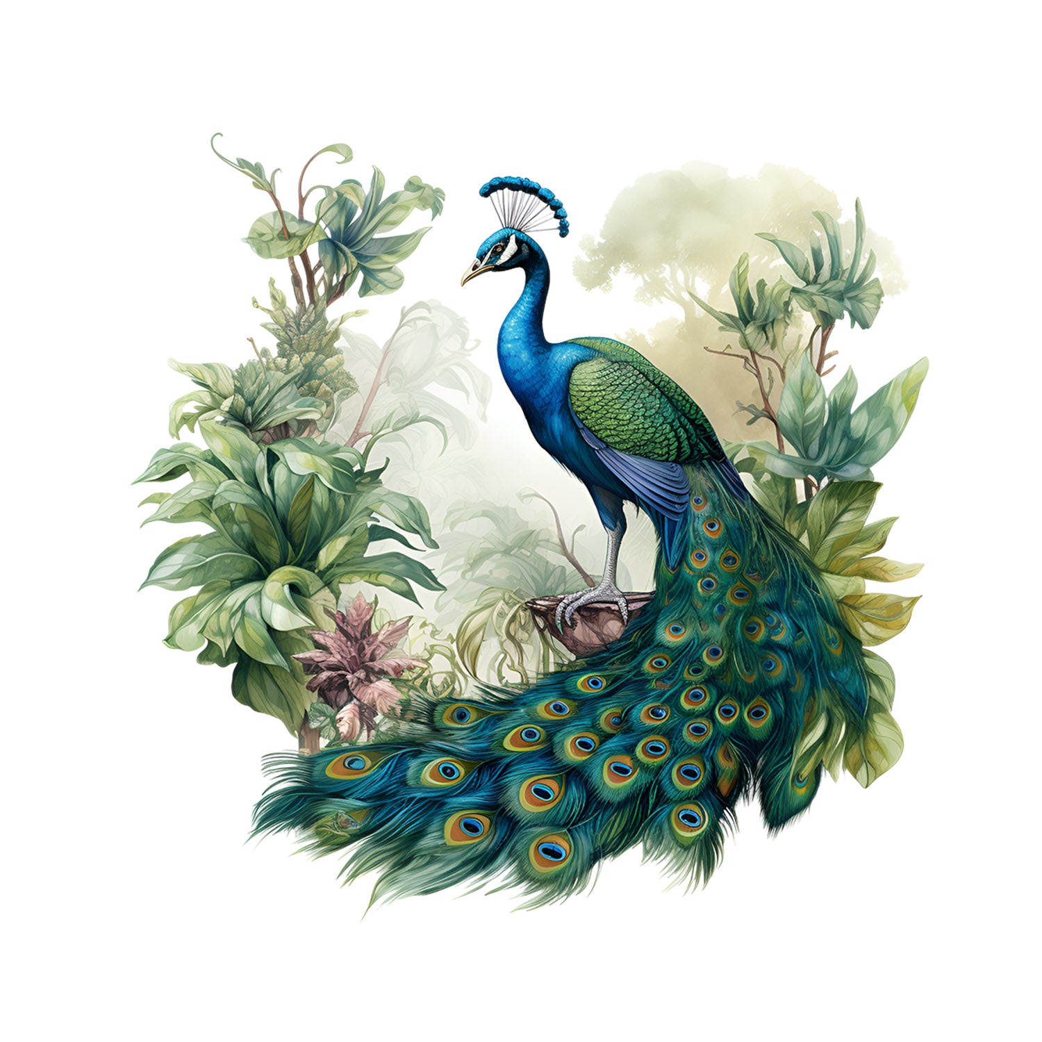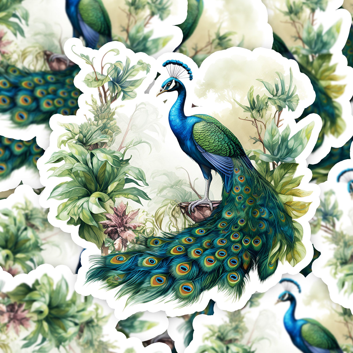Set 5 bucati, Sticker decorativ, Paunul Missy, Rezistent la apa, NO12196, 6 cm, Multicolor