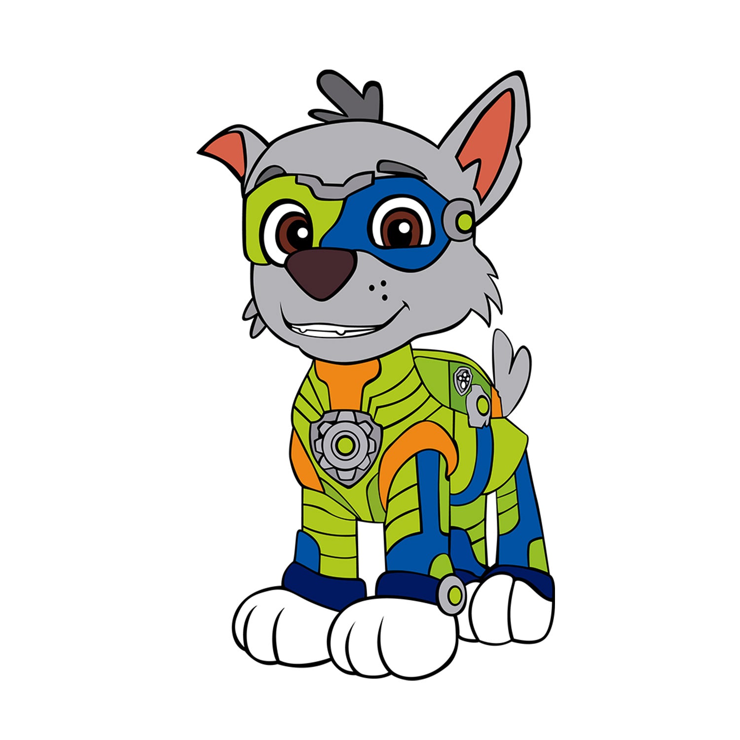 Set 5 bucati, Sticker decorativ, Paw Patrol Rocky cu masca la ochi, Rezistent la apa, NO10955, 6 cm, Multicolor